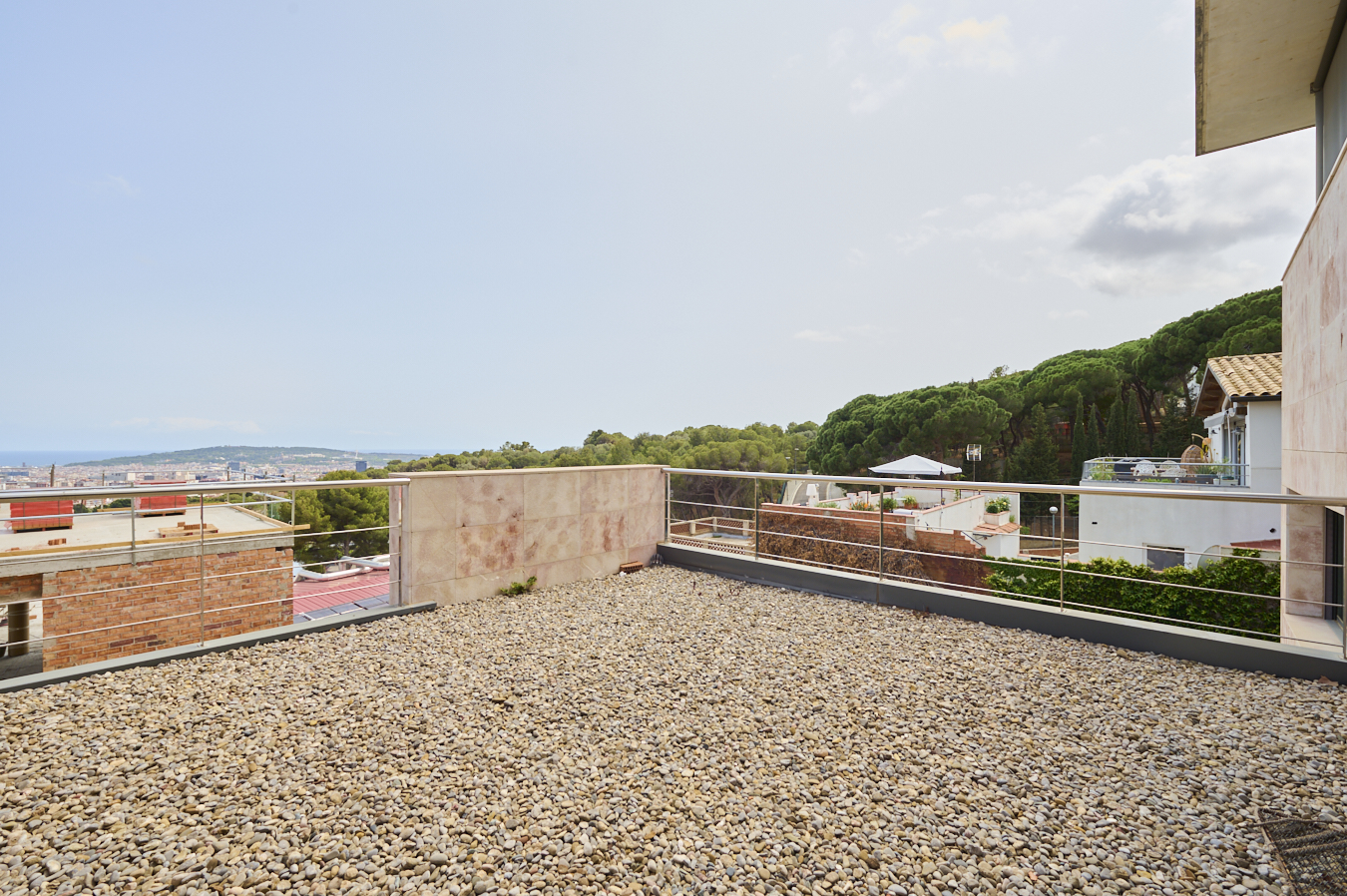 This outstanding detached family house in the best area of Can Caralleu (uptown Barcelona) was built in 2003 and is in perfect condition. It offers spectacular views across Barcelona to the sea, with the best possible orientation (south). With a total built area of 613 sqm plus garden, it’s a unique opportunity to live surrounded by nature with the advantages of the city.