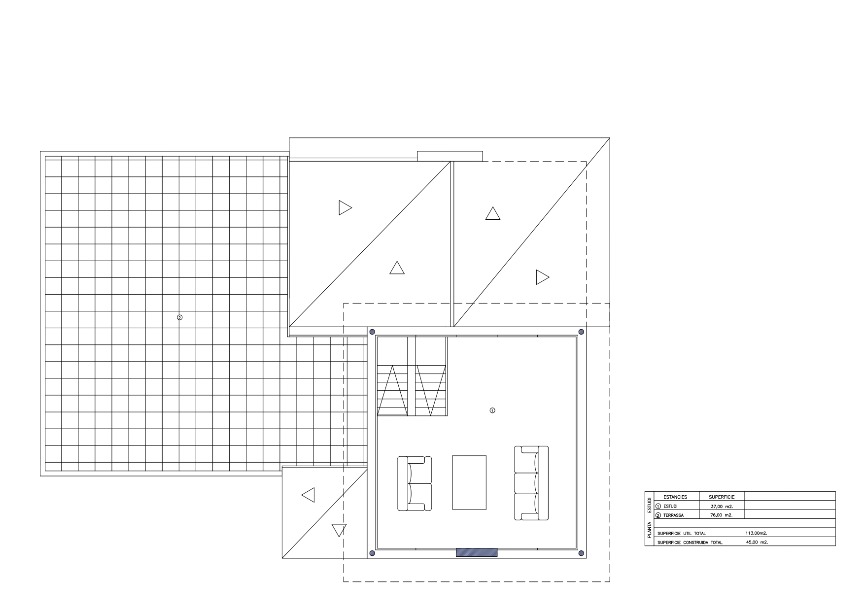 The top floor has a 45 sqm studio, which could be used as a bedroom, cinema room, gym, independent flat, etc. It has access to a wonderful 76 sqm terrace where you can hold lively meetings or relax in the sun.