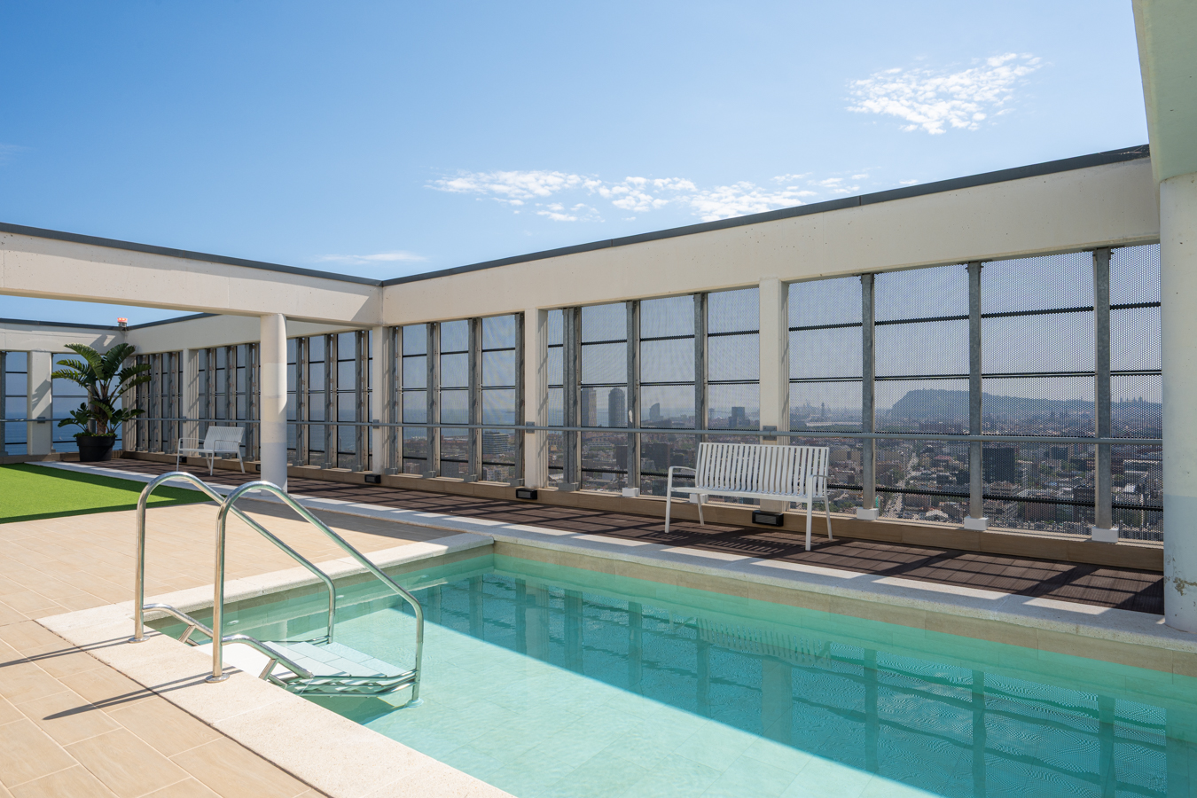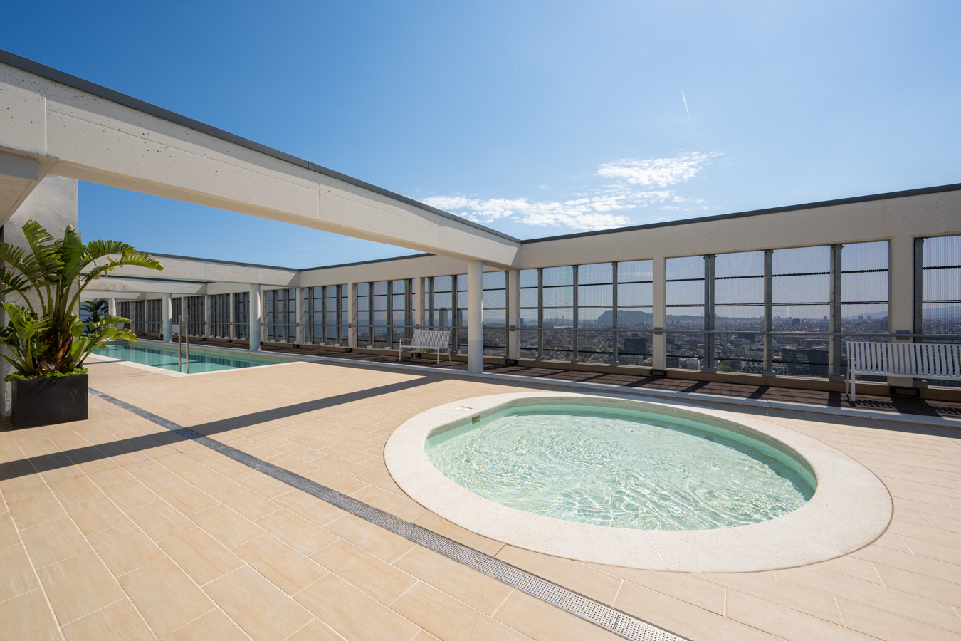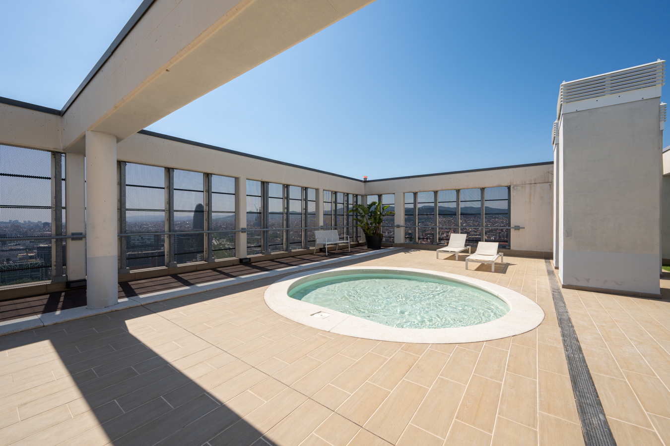 This property is located in Torre Diagonal, one of Barcelona’s most iconic skyscrapers, built in 2016. The rooftop features a sun terrace and two swimming pools, offering unique and impressive panoramic views over the entire city, while the communal facilities include a gym, multipurpose room, parking, as well as 24-hour concierge service and video surveillance.