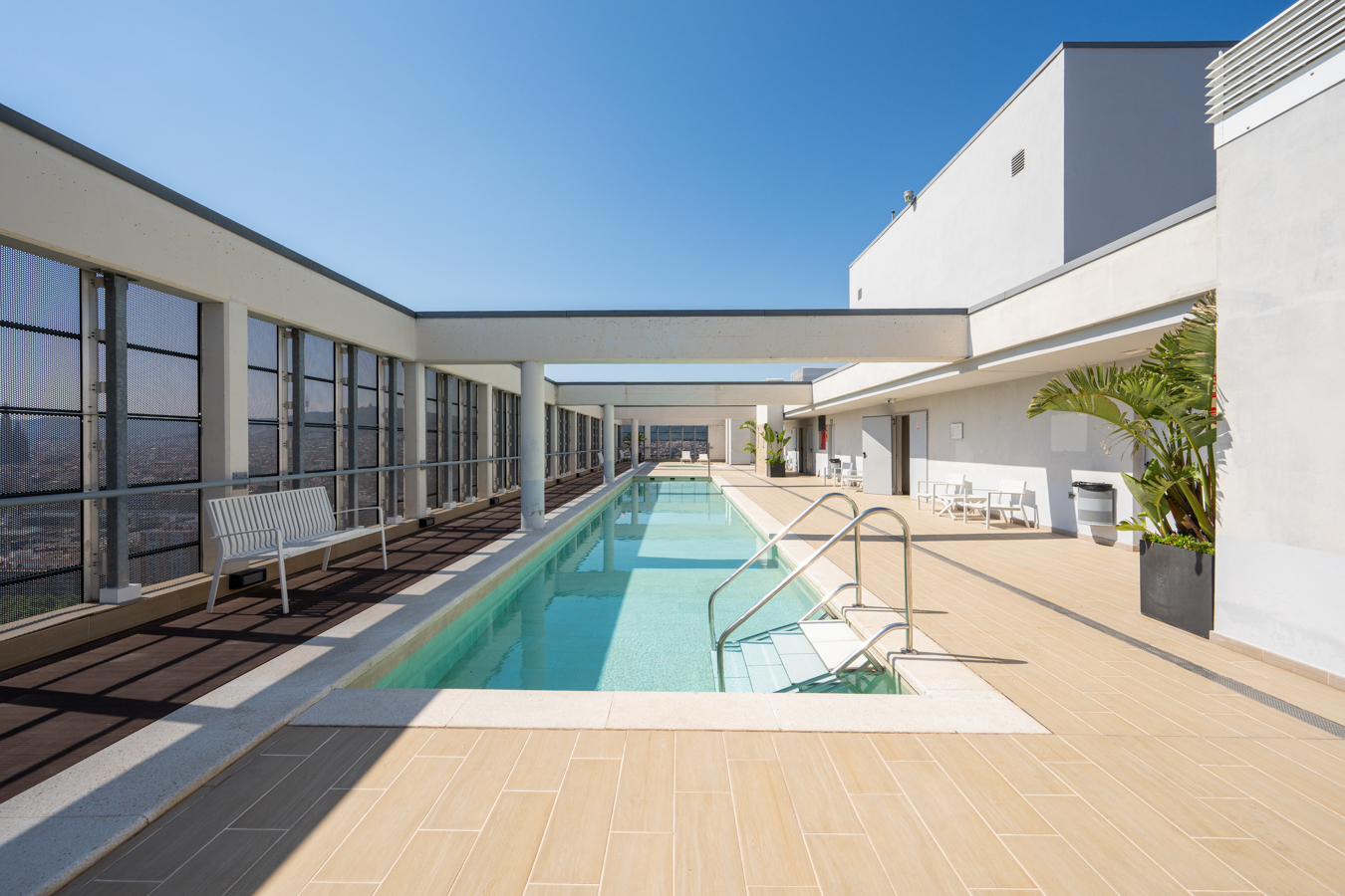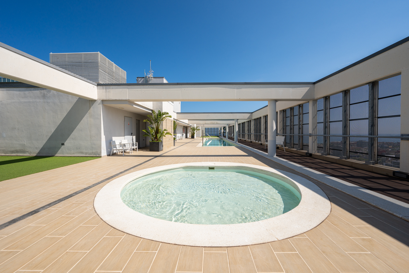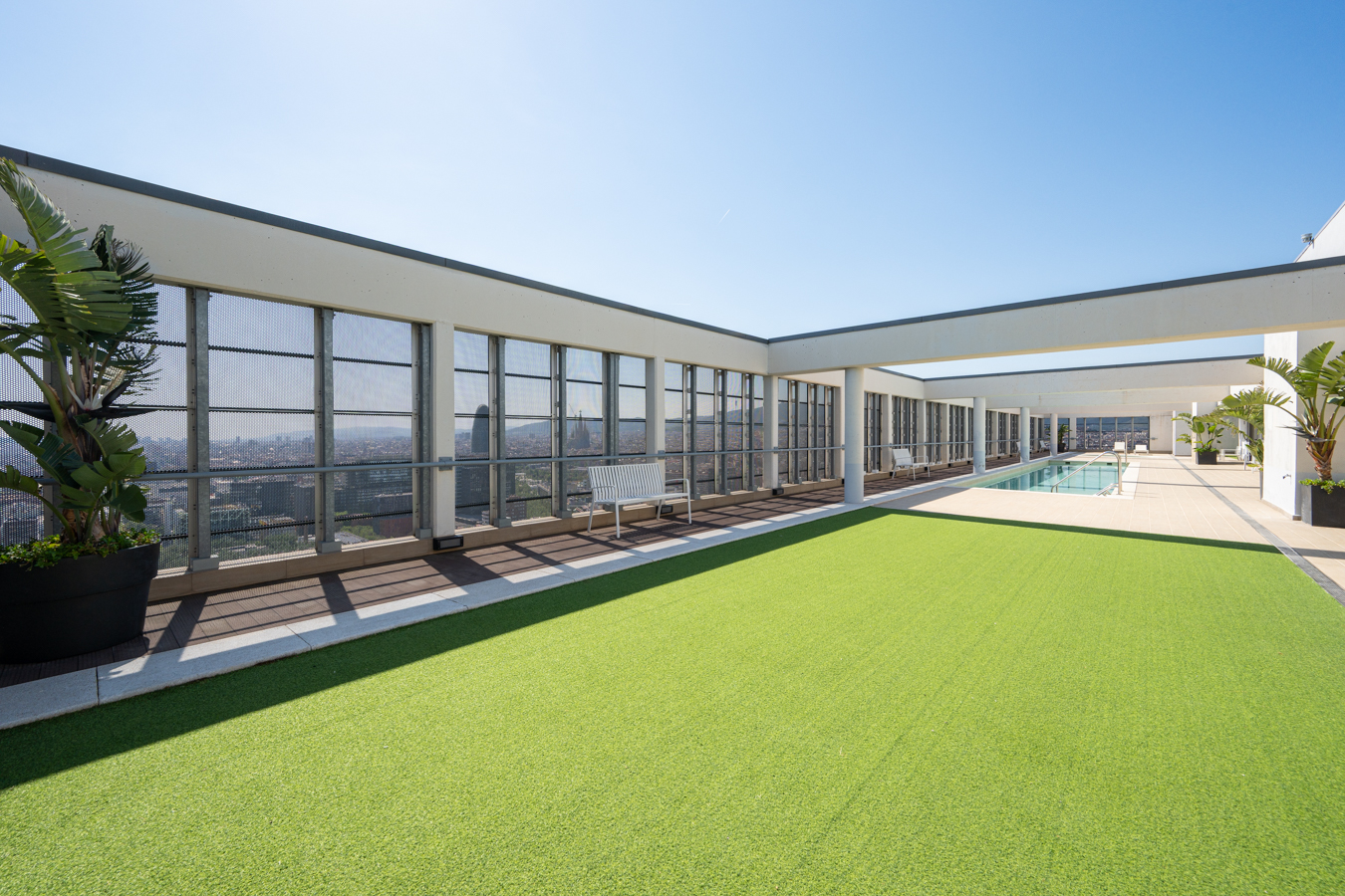 This property is located in Torre Diagonal, one of Barcelona’s most iconic skyscrapers, built in 2016. The rooftop features a sun terrace and two swimming pools, offering unique and impressive panoramic views over the entire city, while the communal facilities include a gym, multipurpose room, parking, as well as 24-hour concierge service and video surveillance.