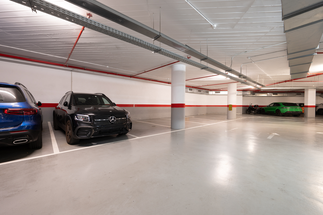 The property is fitted with high-end materials and finishes such as parquet flooring, ducted air conditioning with heat pump via highly efficient aerothermal system (energy rating B), Climalit double-glazed windows, and Bosch appliances. A parking space for a car and motorcycle in the same building is available as an option for €30,000.