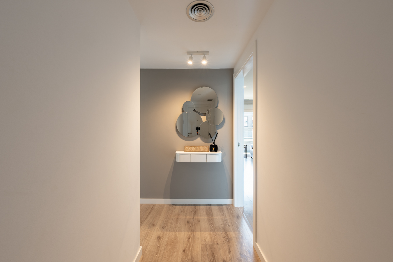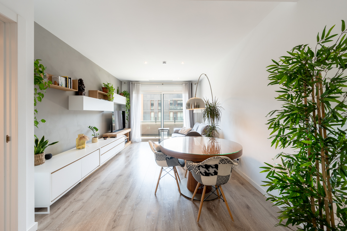 This fantastic apartment has an enviable location in Barcelona and is part of a comprehensive refurbishment project in a regal estate building with exclusive luxury properties. The building is on the corner of Carrer Girona, which is already being converted into a pedestrian street and the works are practically finished, and Avenida Diagonal, which is being transformed into a boulevard with a large pedestrian area, green areas and bicycle lanes, reducing vehicle traffic to a great extent. You will be able to enjoy the best of Barcelona in an incomparable setting: in the heart of Eixample, very close to Paseo de Gracia, the city centre and all the shops and services necessary for day-to-day life. This apartment is located on the real 4th floor and has 87 built sqm (including a 5.6 sqm porch terrace) and 11.59 sqm of communal area. As it is a corner building, it has a great natural light, atypical in the area, and unique views with depth. An entrance hall gives way to the entrance hall, which leads us to the spacious 23 sqm living-dining room with open plan kitchen, which is very bright and quiet. It’s south facing with sun all day and views of one of the best block courtyards in the Eixample, an oasis in the centre of the city. Next to the living-dining room there’s a gallery space, perfect for creating a differentiated and more relaxed atmosphere. The night area has 2 bedrooms. The fantastic master suite has a private bathroom and access to the 5.6 sqm porch terrace. It is also very quiet, as it is oriented towards the interior courtyard. In addition, there is a medium sized interior bedroom and a separate bathroom. The flat, which is scheduled to be completed in the last quarter of 2024 and handed over in the first quarter of 2025, will have the highest quality materials and finishings, as well as an interior design with attention to detail that will combine the classic elements of the regal estate buildings with the most modern. Large spaces and brightness will be important, achieving a balance between traditional elements such as the restored Catalan vaulted ceilings and the comfort and amenities of a new building: underfloor heating and hot-cold air conditioning powered by aerothermics (the latest technology in air conditioning systems that produces energy savings of between 60% and 70% compared to conventional systems), top-of-the-range Siemens appliances, natural wood parquet floors, entrance door with security lock, built-in wardrobes, porcelain tiling on the bathroom walls, Italian designer taps, LED lighting, fibre optic connection, Internet and TV signal sockets, etc. The building, which will be fully refurbished, will have 2 lifts (the original one restored respecting its wooden cabin with a new mechanism and a completely new one), a concierge, an area for charging electric bicycles and a private modernist-vintage style gym with Catalan vault, hydraulic floors and a full bathroom. The extensive main façade of the building, as well as the many interior courtyards and the rear façade, provide the building with excellent lighting and ventilation. The unusual distance to the buildings parallel to the façade further enhances the feeling and perception of spaciousness. As this is a modernist building with important historical value, the interior design team has prioritised the recovery of some of the original elements. For example, a complete restoration and rehabilitation of the modernist stuccoes of the staircase core has been carried out; and in the independent vestibules, recovered hydraulic mosaic tiles will be installed to maintain the historical value of the property. In addition, the exterior joinery has been replaced with wooden windows and balconies with thermal break and laminated insulating glass. This development has 2 and 3 bedroom flats with prices starting at 777.480 € and 1.033.515 €, respectively. Contact Bcn Advisors for more information. * Renderings and square metres in the advert may be subject to change. These images are merely informative and may change depending on the needs of the clients or changes that may be made during the process of execution of the refurbishment project and/or project works. * The plan and content of the advertisement is not a contractual document, it is part of the executive project and may be subject to modifications due to technical requirements, administration or public bodies. The surfaces will be provisional. The furnishings (including the kitchen), gardening and accessory elements are for guidance only.