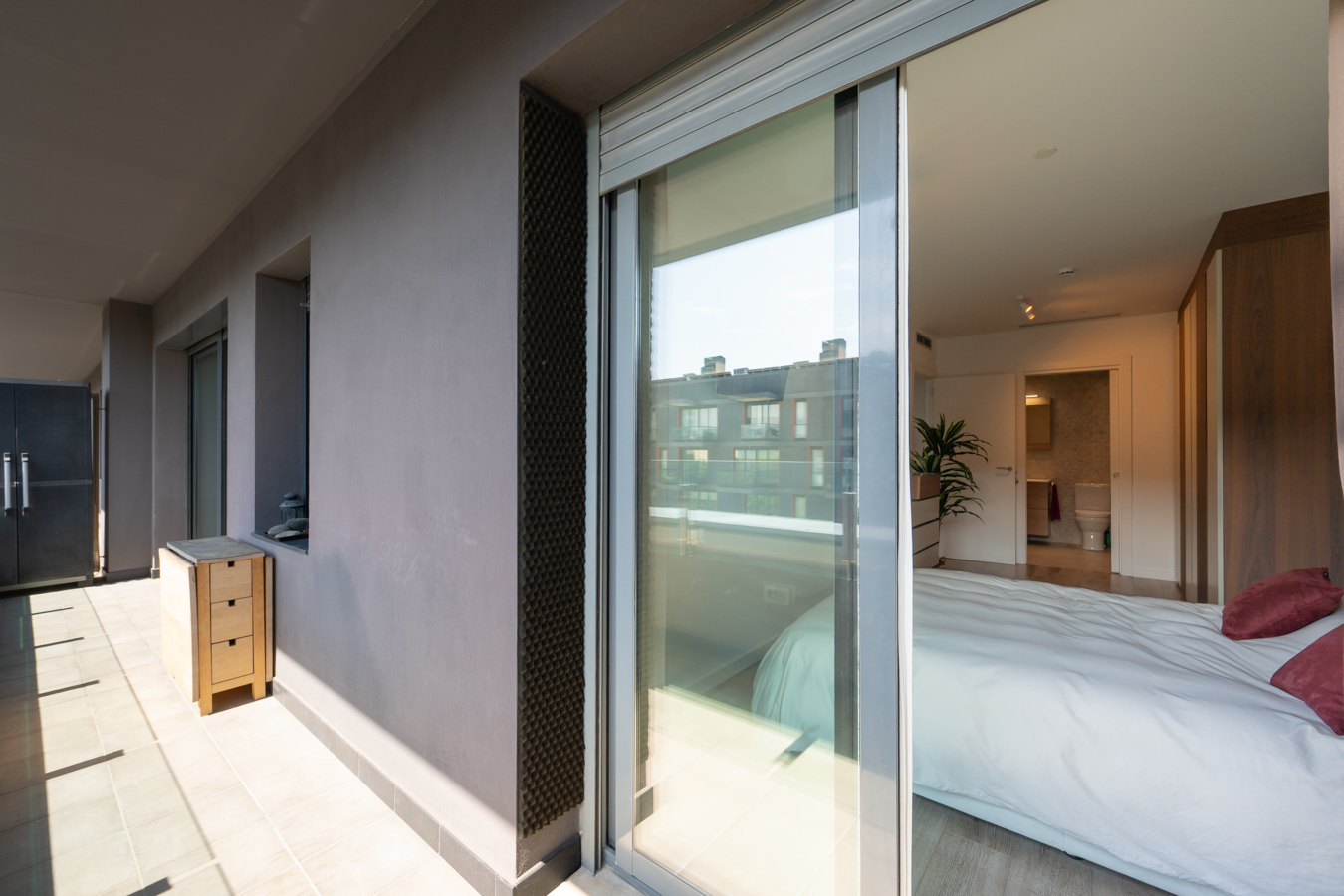 This flat with 81 built interior sqm and a 50 sqm terrace is located in Diagonal Mar, 5 minutes away from the beach, in the luxury building "Illa del Llac". It's a modern residential complex with swimming pool, gym, event areas, children's area, paddle tennis court and 24 hour security, which puts luxury and comfort within your reach. The property is on the ground floor. A spacious entrance hall leads to the day area, a cosy and bright living-dining room with open plan kitchen. It has access to the magnificent west-facing terrace, an ideal place to enjoy outdoor family celebrations, meetings with friends, meals or simply enjoy the sunny weather of Barcelona. From this terrace you can access the communal swimming pool of the building. If we go back to the entrance hall, we access a hallway that divides the night area, which has 2 bright bedrooms with access to the aforementioned terrace. The master bedroom is very large, with 17 sqm, and the other one measures 9 sqm. In addition, there's a separate bathroom and a utility room. The property is equipped with air conditioning hot/cold. Do not hesitate to contact Bcn Advisors to visit this apartment. * The price quoted does not include taxes (ITP for second-hand properties or VAT plus AJD where applicable for new-build properties), nor does it include notary fees, land registry fees, administrative agency fees or any other costs arising from the transaction which, in accordance with current regulations, are payable by the buyer. Real estate agency fees will be borne by the seller, in accordance with the signed agreement.