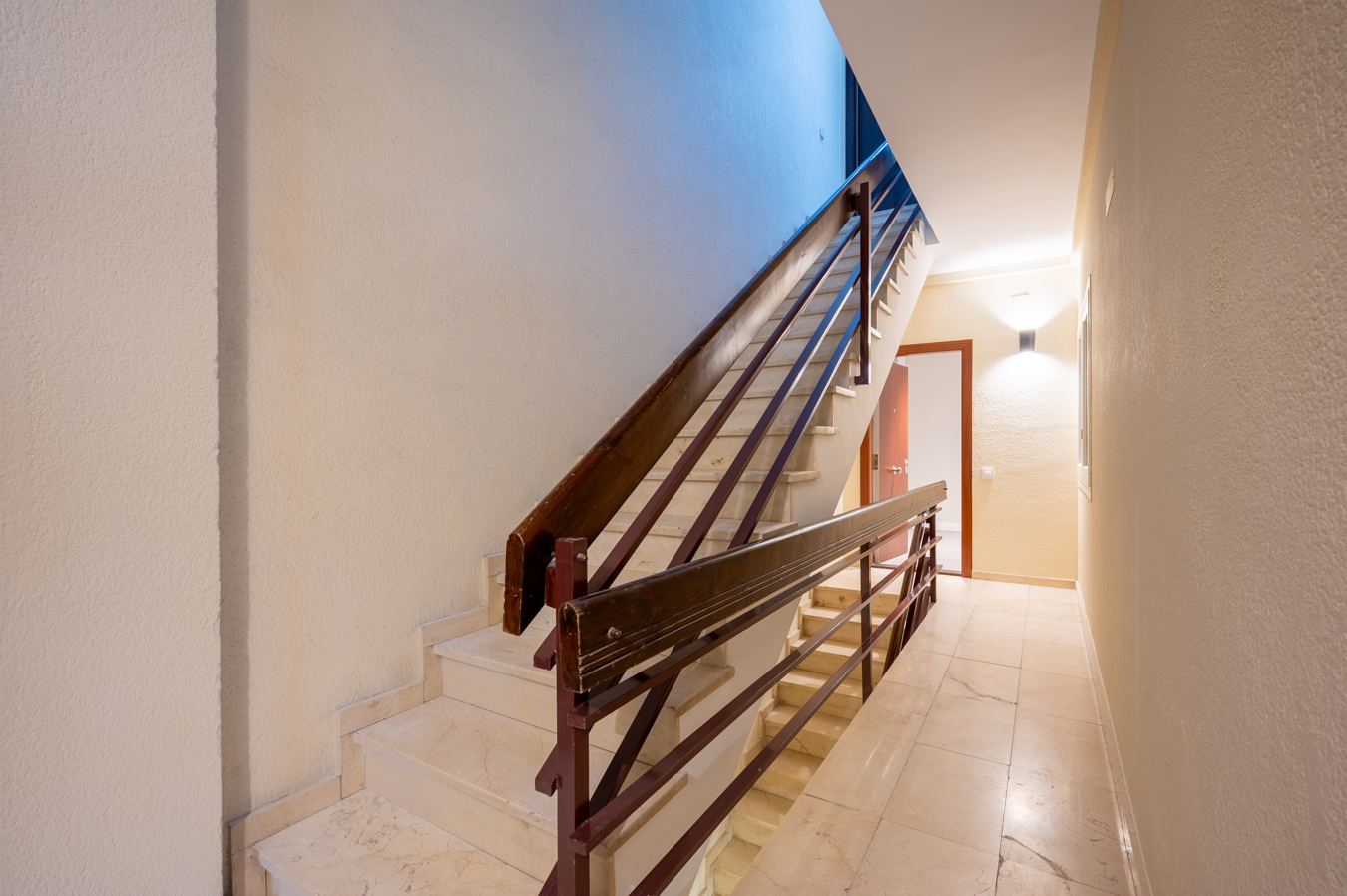 The night area is comfortably distributed around a corridor that connects to the living-dining room. There’s a large en-suite bedroom, with its own bathroom and a built-in wardrobe, and 2 double bedrooms, all very bright.