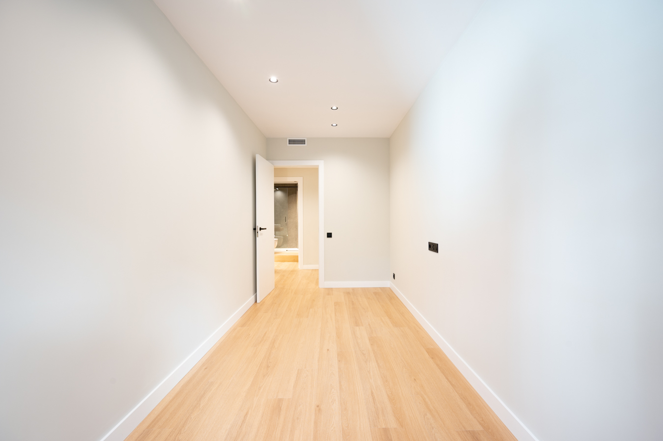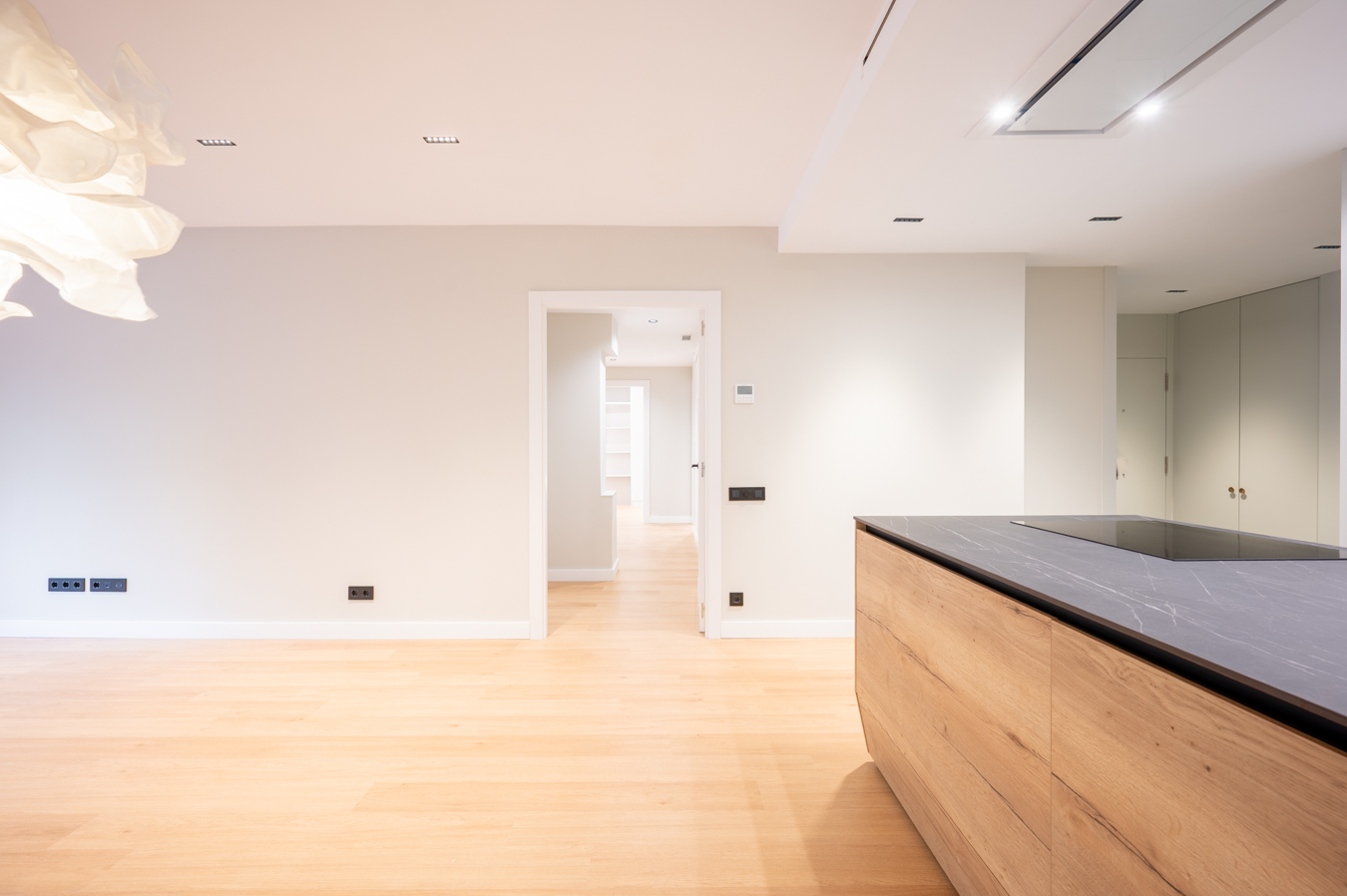 This fabulous property has an enviable location in Barcelona and forms part of a comprehensive refurbishment project in a regal estate building with exclusive luxury flats. The building is on the corner of Carrer Girona, which is already being transformed into a pedestrian street and the works are almost finished, and Avinguda Diagonal, which is being transformed into a boulevard-like avenue with a large pedestrian area, green areas and cycle lanes, significantly reducing car traffic. You will be able to enjoy the best of Barcelona in an incomparable location: in the heart of Eixample, very close to Paseo de Gracia, the city centre and all the shops and services. This flat, on the 1st floor, has 110 built interior sqm and two balconies totalling 4.75 sqm. As it is a corner building, it has great natural light, which is unusual in the Eixample, and unique views with a lot of depth. An entrance hall leads to the hallway, which leads to the large 43 sqm living-dining room with open-plan kitchen, which has a balcony overlooking the street. The night area consists of 2 bedrooms. The fantastic master suite has a dressing room at the entrance and a private bathroom. It also has a balcony facing the street. In addition, there's a double bedroom and, next to it, a separate bathroom. The works are scheduled to be completed in the last quarter of 2024 and the keys will be handed over in the first quarter of 2025. The flat will have the highest quality materials and finishings, as well as an interior design that will combine the classic elements of the regal estate buildings with the most modern. Ample spaces and brightness will be important, achieving a balance between traditional elements such as the restored Catalan vaulted ceilings and the comfort and amenities of a new build: underfloor heating, hot and cold air conditioning powered by aerothermics (the latest technology in air conditioning systems that produces energy savings of between 60% and 70% compared to conventional systems), top-of-the-range electrical appliances, natural wood floors, entrance door with security lock, built-in wardrobes, porcelain tiling on the bathroom walls, LED lighting, fibre optic connection, Internet and television signal sockets, etc. The building, which will be completely refurbished, will have 2 lifts (the original one restored respecting its wooden cabin with a new mechanism and another completely new one), a concierge, an area for charging electric bicycles and a private modernist-vintage style gymnasium with 2 toilets. The wide main façade of the building, as well as the numerous inner courtyards and the rear façade, provide the building with excellent lighting and ventilation. The unusual distance to the buildings parallel to the façade further enhances the feeling and perception of spaciousness. As this is a modernist building with important historical value, the interior design team has prioritised the recovery of some of the original elements. For example, a complete restoration and rehabilitation of the modernist stuccoes of the staircase core has been carried out; and in the independent vestibules, recovered hydraulic mosaic tiles will be installed to maintain the historical value of the property. The exterior joinery has also been replaced with wooden windows and balconies with thermal break and laminated insulating glass. This new development has 1, 2 and 3 bedroom apartments with prices starting at 522.000 €, 626.000 € and 958.000 €, respectively. Do not hesitate to contact Bcn Advisors for more information. * The renderings and square metres in this listing may be subject to change. These images are merely informative and may change depending on the needs of the clients or changes that may be made during the execution process of the refurbishment project and/or project works. * The floorplan and the content of this listing are not a contractual document, it's part of the executive project and may be subject to modifications due to technical requirements, administration or public organisations. The surfaces will be provisional. The furniture (including the kitchen), gardening and accessory elements are only illustrative.