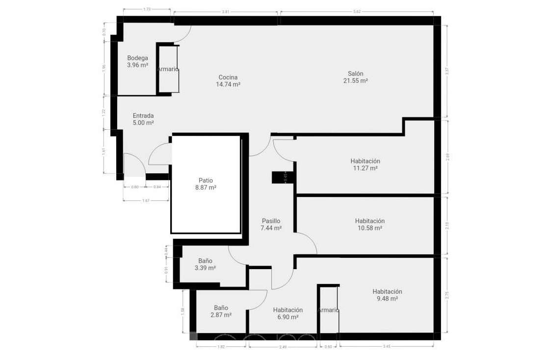 Stunning brand new refurbished 3 bedroom flat with 120 built interior sqm and a 20 sqm terrace. It's on the 1st floor of a regal estate building located on a pedestrian street in the Sant Antoni neighbourhood, with numerous services, local shops, markets and public transport in the surrounding area, as well as proximity to both the rest of the Eixample and the city centre. Upon entering, we find ourselves directly in the impressive living-dining room with an integrated designer kitchen equipped with Bosch appliances. The refurbishment creates a beautiful day area with restored hydraulic floors combined with micro-cement and precious mouldings on the high ceilings. The living room is very bright, thanks to its south-west orientation, and has a balcony overlooking the street, which is pedestrianised and not noisy. From the living room, we access a corridor that distributes the night area. At the back we find 2 double bedrooms, one of them en suite with its own bathroom. Both of them have access to a cosy and quiet terrace of 20 m2, with north-east orientation and which receives morning sun. Covered with wooden decking, it's the perfect place to relax outdoors. In the centre of the flat there's a small double bedroom and a separate bathroom with a shower just like the one in the suite. The refurbishment of this property is of excellent quality both in terms of materials and design, backed by the work of a prominent developer and decorator in other properties. This property is equipped with ducted hot/cold air conditioning, natural oak parquet flooring in the night area, original carpentry and glasswork restored by a cabinetmaker, built-in Imex taps, built-in wardrobes and LED lighting. The 1910 building in which this apartment is located is in a very good state of conservation and has a lift. Do not hesitate to contact Bcn Advisors to visit this flat.