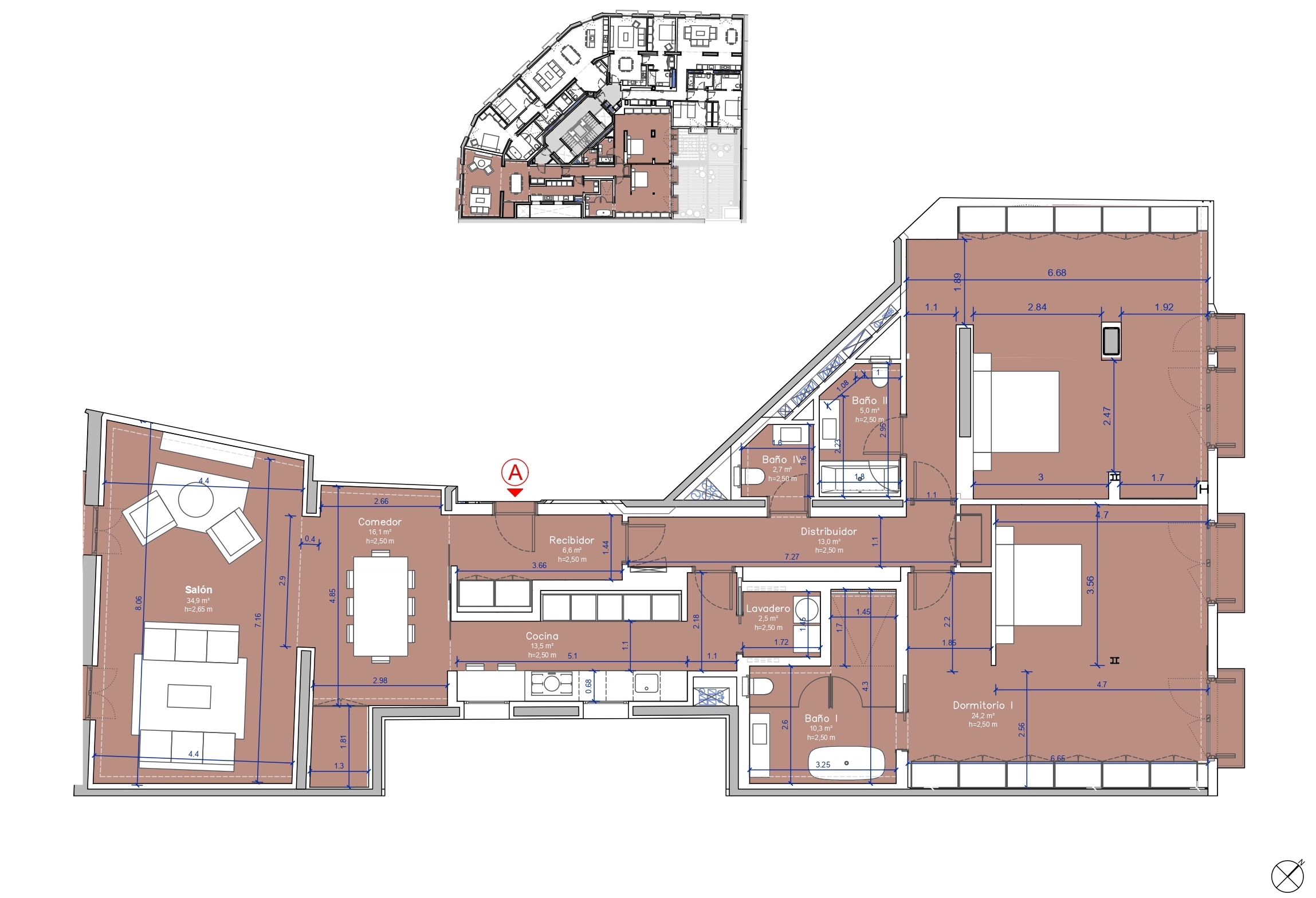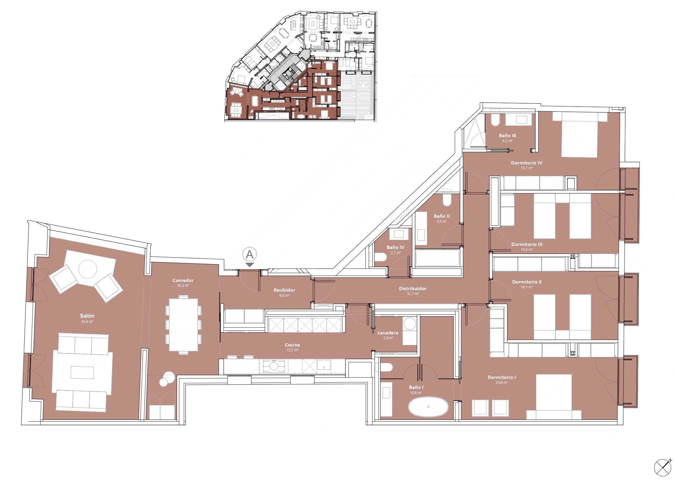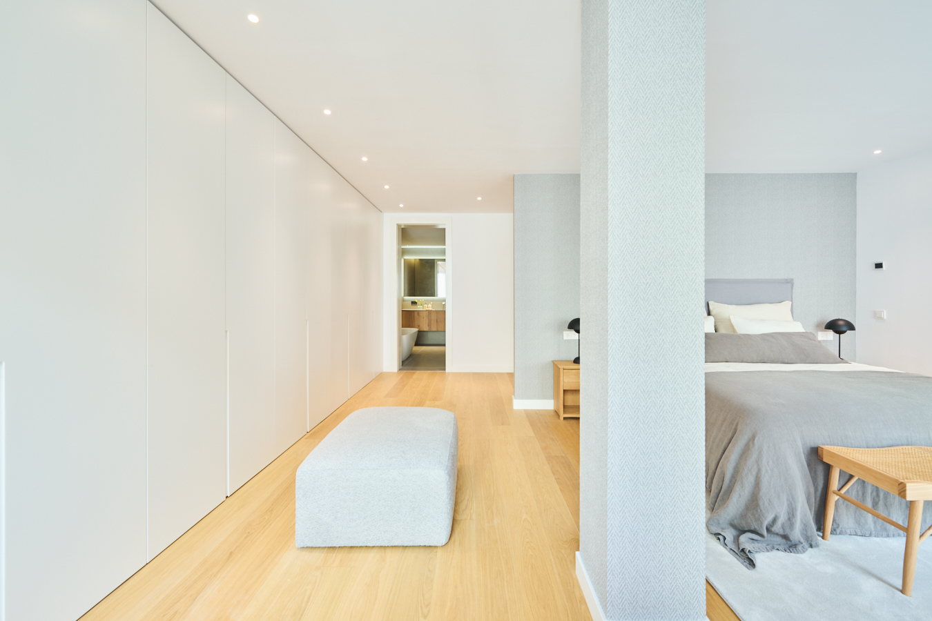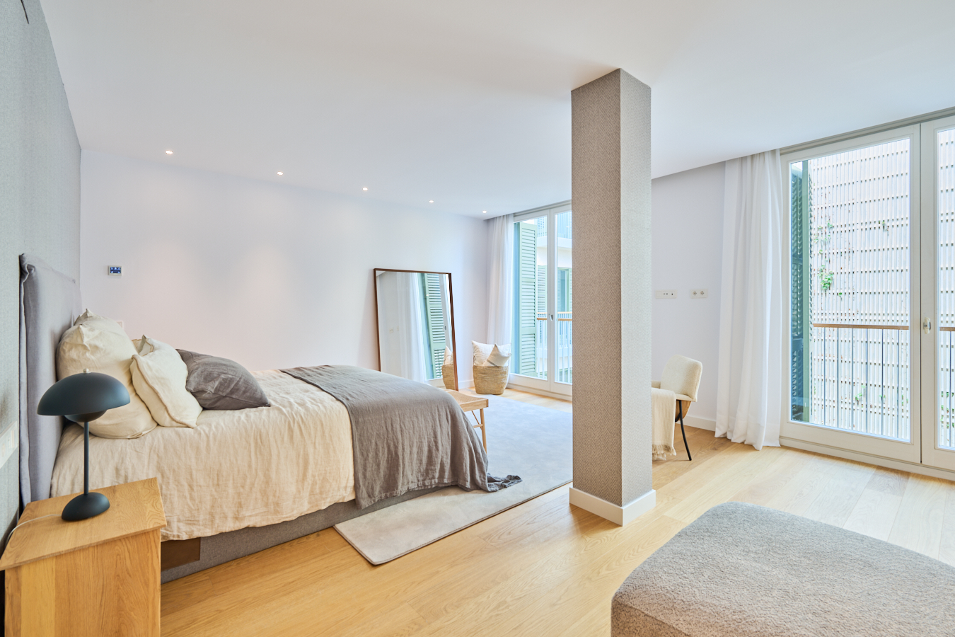 This newly built flat is located in a historic building totally refurbished with luxury properties, in Paseo de Gracia in Barcelona, the most valued avenue in the city and one of the most important in Europe. This is a unique opportunity to live in the centre of the city with the highest comfort and the best quality of materials and finishings, in a building with terrace and swimming pool. This property is located on the fourth floor and has 217 sqm of interior built area. The entrance hall distributes the day and night areas at both ends. The day area has a large continuous space but in which each area occupies its own well differentiated place. The 34 sqm living room has access to two balconies facing Paseo de Gracia, with its fantastic urban and architectural views. This communicates with a dining room that leads to the semi-open kitchen, fully equipped with top brand appliances, which has an adjoining laundry room. A hallway from the entrance hall leads to the night area. The master suite has its own bathroom with bathtub. There's also another en-suite bedroom and one double bedroom. All bedrooms have a balcony facing the beautiful inner courtyard and fitted wardrobes. Finally, there is a separate bathroom with bathtub and a guest toilet. The communal rooftop terrace of the building is a haven above the comings and goings of the big city, filled with plants, tables, sofas and sun loungers. It is the ideal location for the most distinguished gatherings with great views of the city centre and Gaudí's Casa Batlló, to relax or to enjoy the swimming pool. The building has a lift, concierge and 24-hour security. The high-level refurbishment of the property has been carried out using the best materials, meticulous finishing touches and premium design. The highest quality standards combine the elegance of history with the functionality of the present.The property provides the buyer with an interior designer to assist with any changes to the furniture and/or building work to create an alternative layout (examples with 2 and 4 bedrooms are proposed). The location of this flat in Paseo de Gracia is simply unbeatable.You will be able to enjoy the neuralgic and financial centre of the city, its wide range of restaurants and top brand boutiques, its cultural and architectural attractions, and excellent communication by public transport. Do not hesitate to contact Bcn Advisors to find out more about this property and the rest of the flats that are still available in the building.