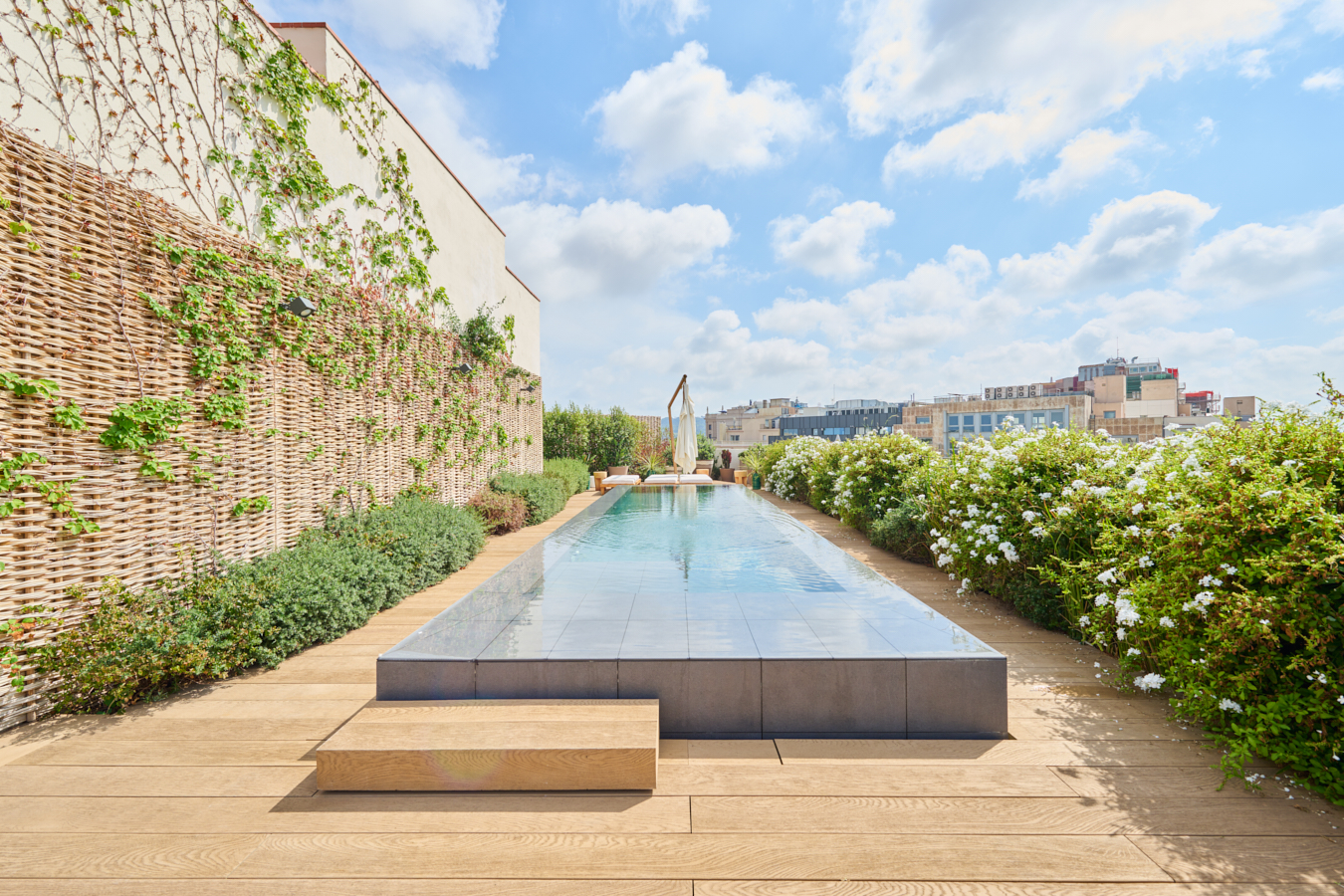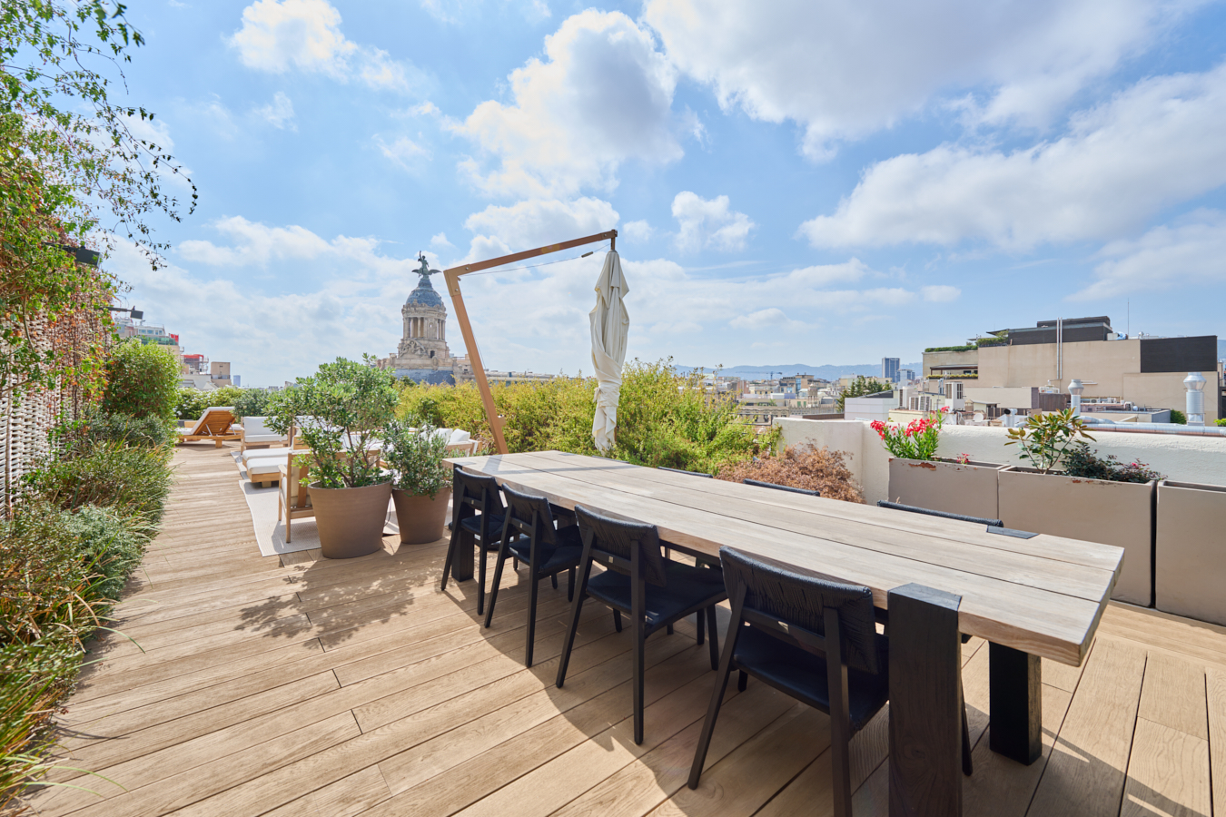 The communal rooftop terrace of the building is an oasis in the middle of the big city, with plants, tables, sofas and sun loungers to enjoy the atmosphere. It’s the perfect place for the most distinguished gatherings with great views of the city centre and Gaudí’s Casa Batlló, to relax or to enjoy the swimming pool. The building has a lift, concierge and 24-hour security.