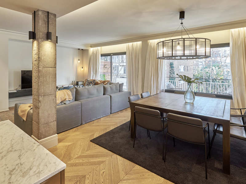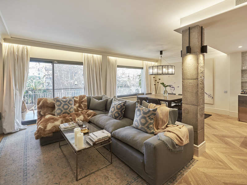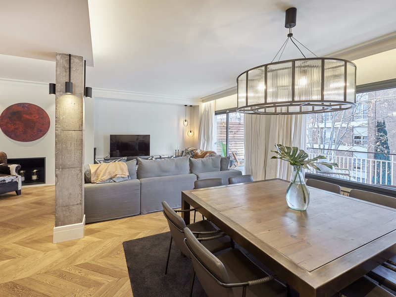 This wonderful brand new refurbished luxury flat is located in a detached building in one of the most prestigious, sought-after, safe and quiet residential areas of Barcelona, in the surroundings of Turó Park, in uptown. The property has been completely refurbished with high quality finishings. It's located on the third floor and is completely exterior, so the natural light reaches all the rooms. It has 177 built interior sqm and 2 terraces that add up to 23 sqm. The building has few neighbours and concierge. A large hall distributes on both sides the day and night areas, clearly differentiated. The day area, with 36 sqm, is a spacious living-dining room with an open-plan kitchen with central island. It has access to a 14 sqm terrace facing the street, very quiet and with hardly any traffic. The entrance hall has a panelling that hides a guest toilet and a laundry room. The night area features 4 exterior and bright bedrooms. The impressive master suite has a large dressing room, its own bathroom and access to a 8.6 sqm terrace facing the back of the building. In addition, there are 2 double bedrooms with office area and built-in wardrobes, which share a separate bathroom, and a single en-suite bedroom, which could be the maid's room. The apartment is equipped with herringbone parquet floors, ducted hot/cold air-conditioning and household appliances. In the surrounding area there are numerous shops, services, private and international schools, business schools, private medical centres and connections by bus and FGC railway with the rest of the city.