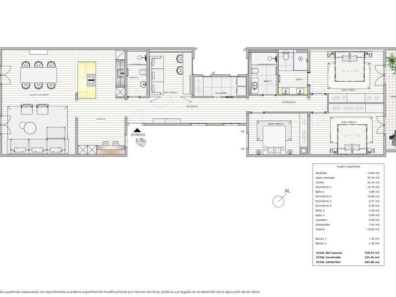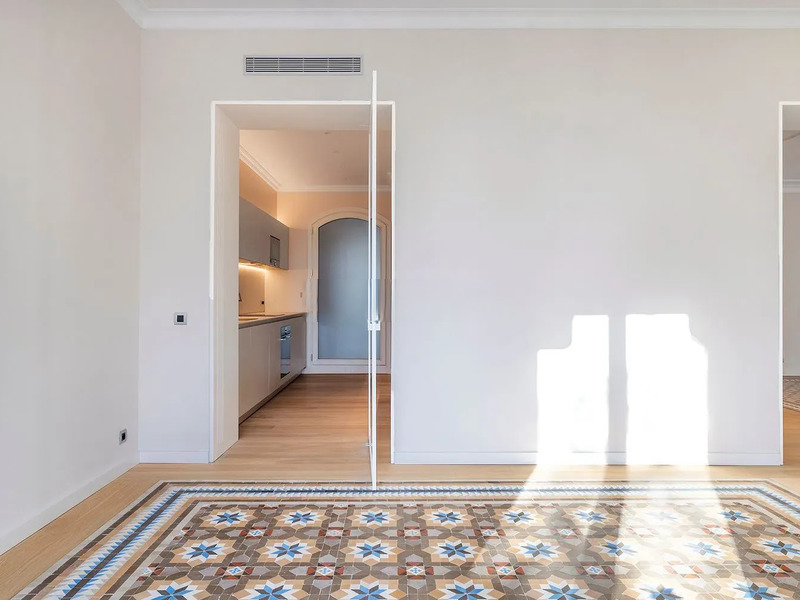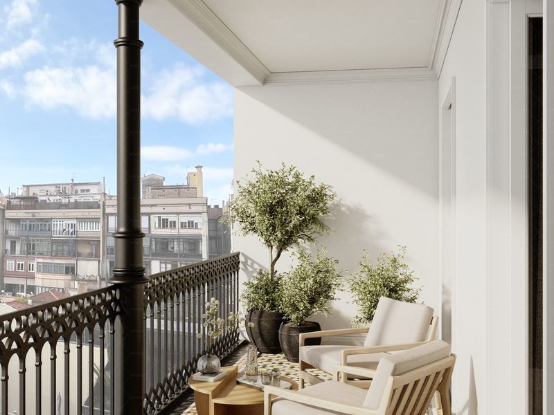 This magnificent, spacious flat enjoys a privileged location in the heart of the Eixample district, just two streets away from Paseo de Gracia and a 10-minute walk from Plaza Catalunya. It's on the real third floor of a stately building with few neighbours and a lift, concierge and communal roof terrace. The property has 203 sqm, including common elements, according to the Land Registry. The flat has a floor area of 175 sqm with a 10.6 sqm terrace and two balconies. It will be handed over newly renovated and furnished, combining the essence of classic Barcelona architecture with contemporary comfort, while preserving the original features that give it a unique historical character. The living area is a spacious, continuous space bathed in natural light where the rooms flow into one another. The living-dining room has access to two balconies overlooking the street, while the fully equipped kitchen includes a central island and a breakfast bar. There's also a laundry room. The night area has 4 bedrooms and 3 bathrooms. The master bedroom en suite with private bathroom has access to the quiet terrace, which overlooks the block courtyard. An ideal place to relax and escape from everyday worries. Next to it we find 2 double bedrooms, one of which has access to the terrace, which share a full bathroom. In the central part of the flat there's a medium-sized interior room, which could be another bedroom or a study, and a bathroom. The choice of high-quality materials and finishes stands out in the comprehensive renovation, clearly distinguishing it from other properties in the area. The carpentry, both exterior and interior, has been completely renovated with attention to every detail. Made of wood, they add warmth and value to the whole. The exterior carpentry retains the original design, incorporating low-emissivity glass and insulating chambers that reduce noise and temperature variations, creating comfortable spaces. The interior carpentry, whether hinged or sliding Krona type, reaches up to the ceiling. The bathroom furniture has been specifically designed for each room and the custom-made cabinets feature textile or wood interiors with LED lighting. Ornate or Catalan vaulted ceilings, wooden or iron beams, walls with mouldings or decorative tiles, and carefully selected parquet or tile floors have also been preserved or restored, achieving a balanced and elegant whole. The surroundings of this property offer everything you need for everyday life and to enjoy Barcelona to the fullest. Services, neighbourhood shops, top brand boutiques, shopping centres, public transport, prestigious institutions, cafés, restaurants, theatres, leisure, culture... you will have everything close by. Please do not hesitate to contact Bcn Advisors to visit this flat. * The images are renderings of the final state after the renovation, which is expected to be completed on March 2026. The photographs of the building are real.