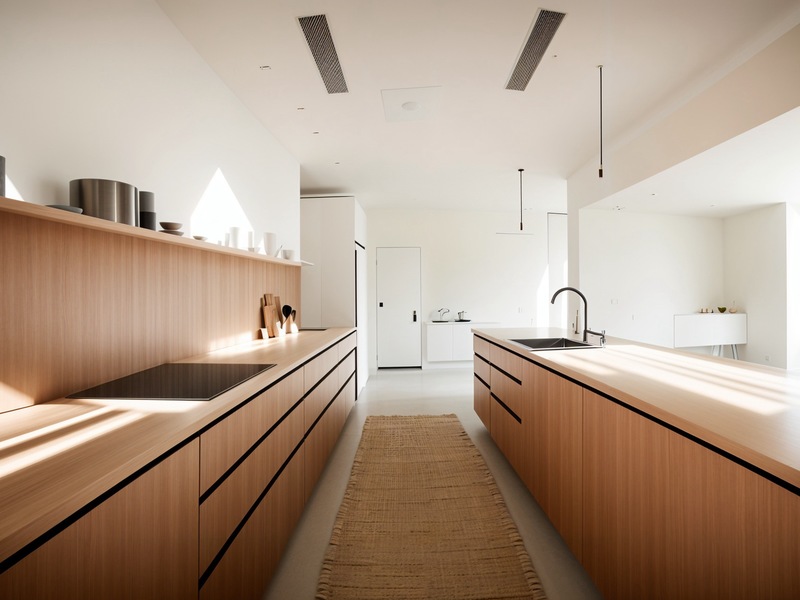 The entrance hall clearly separates the day and night areas. The day area is a large 50 sqm living-dining room with open kitchen and access to the wonderful terrace, which surrounds it completely. It is the perfect place to enjoy meals and meetings outdoors, or simply relax admiring the views. It has teak wood flooring.