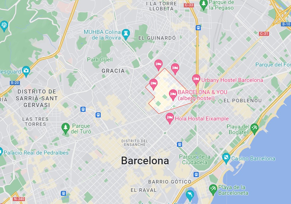 The residential streets surrounding Antoni Gaudí’s unfinished masterpiece are very quiet, which contrasts with the extraordinary and bold Gothic Basilica that gives the area its name. The surroundings of the basilica are typical of the large L’Eixample district, long, wide streets arranged in a grid. Its tranquility and lack of traffic at night contribute to making it an ideal option if you are looking for tranquility in the city.