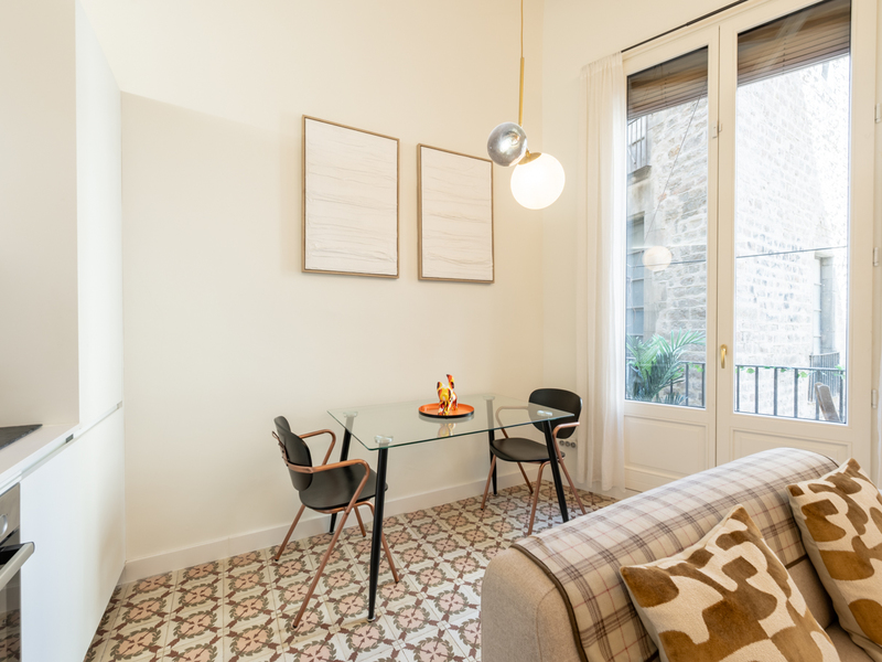 Dans l'une des rues piétonnes les plus calmes et les plus charmantes du quartier gothique, se trouve cet appartement exceptionnel récemment rénové, où la lumière méditerranéenne, le design contemporain et l'essence historique de Barcelone se combinent en parfaite harmonie. Il est situé à quelques minutes du Soho House Barcelona et du front de mer, avec de nombreux commerces, services et transports publics à proximité. Situé au quatrième et dernier étage d'un immeuble rénové sans ascenseur, l'appartement bénéficie d'une double orientation, ce qui garantit une lumière naturelle tout au long de la journée et une sensation de tranquillité remarquable. La vue dégagée et la présence de deux agréables cours intérieures renforcent le calme et le confort, ce qui est rare dans ce quartier de la ville. La rénovation a été conçue avec une intention claire : ouvrir les espaces, renforcer la lumière et créer un foyer fluide, pensé à la fois pour un usage quotidien et pour partager des moments avec des invités, sans renoncer à l'intimité. Le cœur de la maison est un espace ouvert qui intègre le salon, la salle à manger et la cuisine, idéal pour les longues tables, les rencontres spontanées et une vie sociale active. Les sols en microciment, associés à des mosaïques originales récupérées, apportent caractère et personnalité, tout en conservant une esthétique sobre et intemporelle. La cuisine est entièrement équipée d'appareils électroménagers, y compris un réfrigérateur à vin. L'appartement dispose actuellement d'une chambre lumineuse et accueillante, équipée d'armoires encastrées et de meubles sur mesure, ainsi que d'un hublot unique qui relie visuellement la zone de jour et renforce la sensation d'espace. Il est possible de créer une deuxième chambre (voir le deuxième plan avec la proposition). Le logement est vendu meublé. Il conserve et met en valeur des éléments d'origine tels que les poutres apparentes, les menuiseries et les mosaïques hydrauliques, qui dialoguent avec une ligne contemporaine élégante et équilibrée. L'éclairage encastré, le choix de matériaux de haute qualité et le souci du détail reflètent une rénovation soignée et cohérente. Une propriété conçue pour ceux qui souhaitent vivre au rythme de la ville tout en rentrant chez eux pour trouver lumière, silence et beauté. Pour ceux qui apprécient les espaces bien conçus, la qualité des matériaux et la possibilité de profiter de leur maison avec des amis, sans renoncer à la tranquillité ni à l'intimité. * Le prix indiqué ne comprend pas les taxes (ITP pour les propriétés d'occasion ou TVA et AJD le cas échéant pour les propriétés de nouvelle construction), ni les frais de notaire, d'enregistrement foncier, d'agence administrative, ni aucun autre frais lié à la transaction qui, conformément à la réglementation en vigueur, sont à la charge de l'acheteur. Les honoraires d'agence immobilière seront pris en charge par le vendeur, conformément au mandat signé.