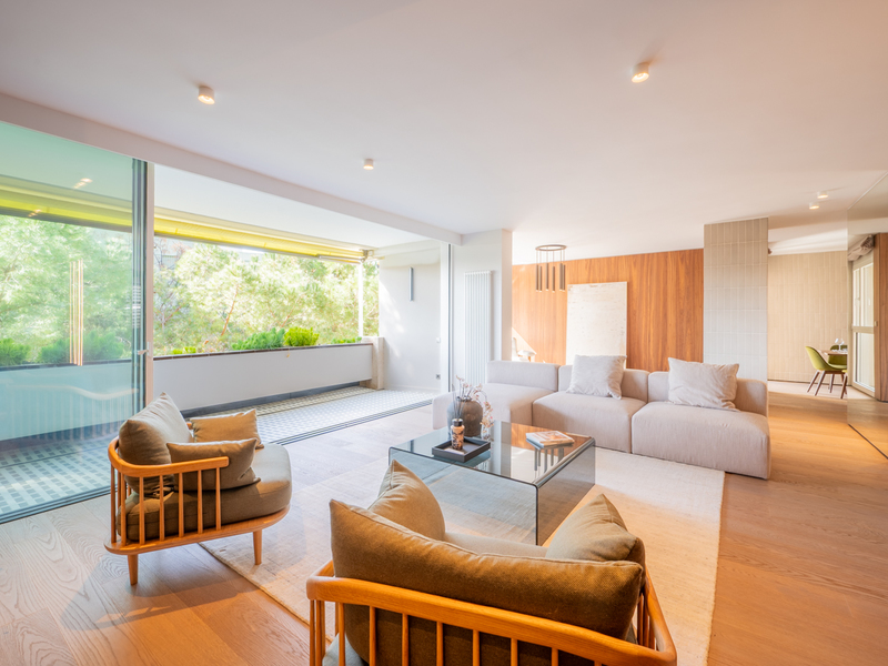 Découvrez ce spectaculaire appartement entièrement rénové de 280 m2 intérieur plus 10 m2 de terrasse, avec des finitions de luxe haut de gamme. L'appartement est entièrement extérieur et grâce à son orientation, il est particulièrement ensoleillé, vous permettant de profiter de la lumière naturelle tout au long de la journée. Il est situé dans l'un des quartiers les plus exclusifs de la ville, dans une zone connue pour sa tranquillité, sa sécurité et sa proximité avec des services de première classe tels que des écoles internationales, des boutiques de luxe et des restaurants renommés. Il est également très bien desservi par les transports en commun, ce qui vous permet de rester en contact avec le centre-ville. Avec un accès direct par l'ascenseur, le confort est total dès le premier instant. Le hall d'entrée mène au salon spacieux et lumineux avec accès à une belle terrasse donnant sur le magnifique jardin commun. La salle à manger mène à la cuisine qui comprend une buanderie et une zone de service avec une chambre simple et une salle de bains complète. L'espace nuit comprend quatre chambres doubles avec placards. L'une d'entre elles est une suite parentale avec douche et baignoire, dressing et accès à un bureau confortable. En outre, l'appartement dispose de deux salles de bains complètes avec douche. Le prix de cette propriété comprend deux places de parking.