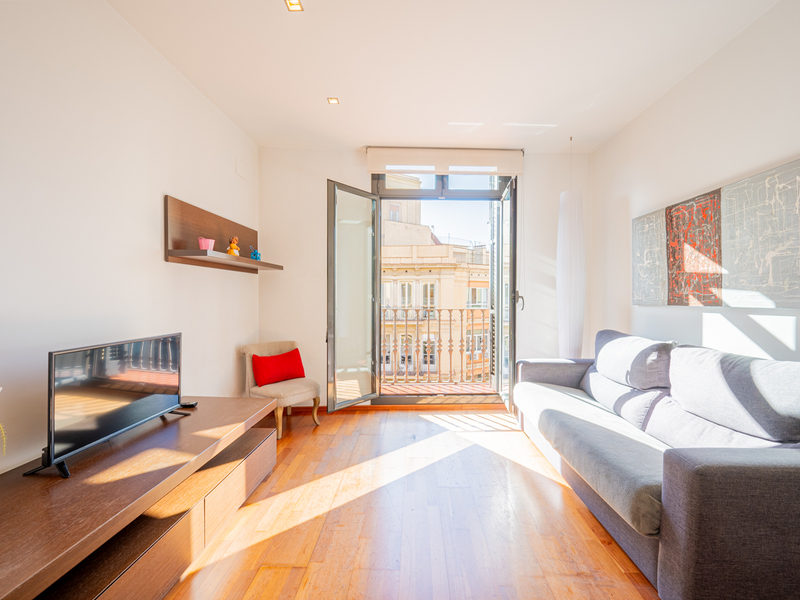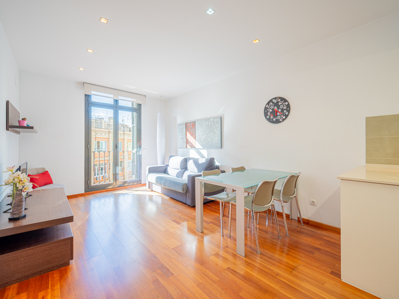 Cet appartement jouit d'une situation privilégiée dans le centre de Barcelone, à une rue de la Plaza Catalunya et de la Plaza Universitat. C'est une opportunité parfaite comme investissement dans un quartier très recherché ou comme pied-à-terre pour vos séjours dans la ville, avec d'excellentes liaisons de transport vers n'importe quel endroit de la ville et de la région métropolitaine. La propriété a 58,5 m2 d'intérieur construit et 2 balcons qui totalisent 2 m2. Il se trouve au cinquième étage réel d'un bâtiment royal avec ascenseur. Le salon-salle à manger avec cuisine ouverte est très lumineux et a accès à un balcon avec des vues agréables sur la ville et son architecture renommée. L'appartement dispose de deux chambres doubles. La chambre principale est extérieure à la rue avec un balcon et dispose d'une armoire encastrée, tandis que l'autre est intérieure. L'appartement est équipé de parquet et de l'air conditionné chaud/froid. La propriété est entourée de tout ce dont vous avez besoin pour vivre avec le maximum de confort dans le centre de la ville : services, commerces de proximité, boutiques de grandes marques, centres commerciaux, bars et restaurants, théâtres, etc. En outre, il bénéficie des meilleures connexions de transport public pour se déplacer dans la ville et la région métropolitaine de Barcelone en peu de temps, ainsi que d'un accès facile à la gare de train à grande vitesse AVE et à l'aéroport. N'hésitez pas à contacter Bcn Advisors pour visiter cet appartement.