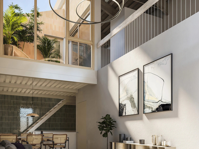 Ce loft fait partie du projet de construction neuve Can Ricart, qui a transformé 4 bâtiments emblématiques de la Barcelone industrielle du XIXe siècle, déclarés d'intérêt national, en maisons magnifiquement conçues et délicieusement équipées, dotées d'une grande personnalité. La propriété est située dans le quartier de Poblenou, qui offre un mélange fascinant d'entreprises de haute technologie, d'universités, de résidences étudiantes, d'hôtels, de parcs et d'une riche offre culturelle et de loisirs. Il abrite également le dynamique quartier technologique 22@, qui attire les talents, les nomades numériques, les start-ups et les grandes entreprises technologiques. Ce loft dispose de 96 m2 d'espace intérieur répartis sur deux étages et une cour de 12,6 m2. Il se trouve dans le plus grand bâtiment historique, qui dispose d'une piscine commune. Les arches d'origine des façades patrimoniales ont été récupérées et les portes ont été réinterprétées pour donner un accès lumineux aux appartements. La façade arrière a été déplacée pour créer un passage extérieur longitudinal intime et agréable. Le rez-de-chaussée dispose d'un magnifique salon-salle à manger et d'une cuisine semi-ouverte, qui occupe un espace séparé. En outre, il y a une chambre double en suite avec sa propre salle de bains. L'étage supérieur dispose d'une autre chambre double avec salle de bains attenante et accès au patio, un endroit idéal pour se détendre et boire un verre en plein air. La structure spectaculaire avec de hauts plafonds baigne ce loft dans la lumière naturelle grâce aux grandes ouvertures dans les toits. La propriété dispose de finitions d'excellente qualité. Il s'agit notamment de la domotique, de sols en microciment au rez-de-chaussée et en bois naturel dans le reste de l'appartement, ainsi que d'un système de climatisation avec pompe à chaleur. Les cuisines sont entièrement équipées d'appareils Siemens et les salles de bains sont dotées d'équipements Duravit et de robinets Hansgrohe. N'hésitez pas à contacter Bcn Advisors pour visiter ce loft et connaître le reste des propriétés disponibles. * Les photographies appartiennent à plusieurs lofts du projet.