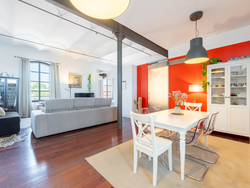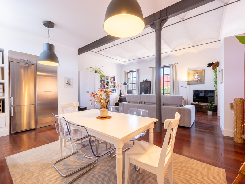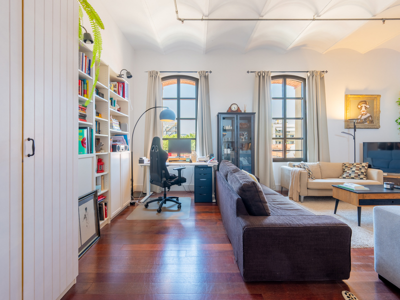 Ce magnifique loft est situé dans une ancienne usine de farine qui a été entièrement restaurée pour devenir un complexe résidentiel, combinant parfaitement la touche historique et traditionnelle de Barcelone avec les éléments d'une nouvelle construction. Il s'agit d'un environnement et d'un style de vie uniques qui rappellent les lofts new-yorkais typiques, mais avec tous les avantages de la vie dans la meilleure ville méditerranéenne d'Europe. La propriété est située au troisième étage et est entièrement extérieure, ce qui la rend extrêmement lumineuse avec une vue spectaculaire sur la Sagrada Familia et les montagnes ; elle est également très calme, car elle donne sur un passage. Son état de conservation est parfait, presque neuf. Le cœur du loft est son grand espace jour, qui intègre le salon-salle à manger et la cuisine dans un espace ouvert avec deux grandes fenêtres. La chambre à coucher dispose d'une autre grande fenêtre et est fermée comme un espace privé avec des murs qui n'atteignent pas le plafond, ce qui maintient la circulation de la lumière naturelle mais nous donne une séparation visuelle et de l'intimité. Il y a également une salle de bain complète avec douche. En outre, une deuxième chambre peut être créée en fermant une partie du salon. Enfin, le loft dispose d'une pièce de rangement fermée, idéale pour ranger les affaires courantes. Le loft conserve des éléments d'origine tels que les très hauts plafonds avec voûte catalane restaurée et les menuiseries qui conservent l'esthétique industrielle de l'usine. Il est équipé de parquet et de l'air conditionné avec pompe à chaleur et gaines apparentes de style industriel. L'immeuble dispose d'un ascenseur, d'une terrasse commune et d'un parking, où il est facile de trouver des places de stationnement à vendre et à louer. Ce loft est situé dans l'ancienne usine de farine La Fama, datant de la fin du 19ème siècle. Les locaux étaient caractérisés par de grandes structures avec des piliers en fonte et des murs en céramique avec des briques apparentes et de grandes ouvertures, qui créaient à leur tour des cours et des passages intérieurs. Aujourd'hui, la tour à farine d'origine et la cheminée attenante ont été conservées. Vivre dans ce loft, c'est profiter de l'un des environnements les plus éclectiques de Barcelone, Poblenou, qui a conservé son caractère traditionnel en combinant l'architecture traditionnelle du quartier. Le quartier environnant dispose de nombreux commerces et services, de transports en commun, de la plage de Bogatell et du grand espace vert du parc de Poblenou à quelques pas. N'hésitez pas à contacter Bcn Advisors pour visiter ce loft.