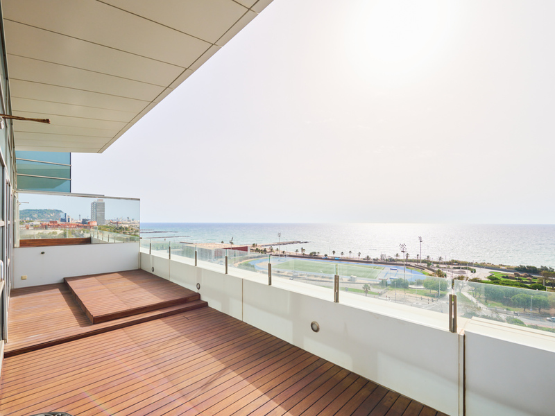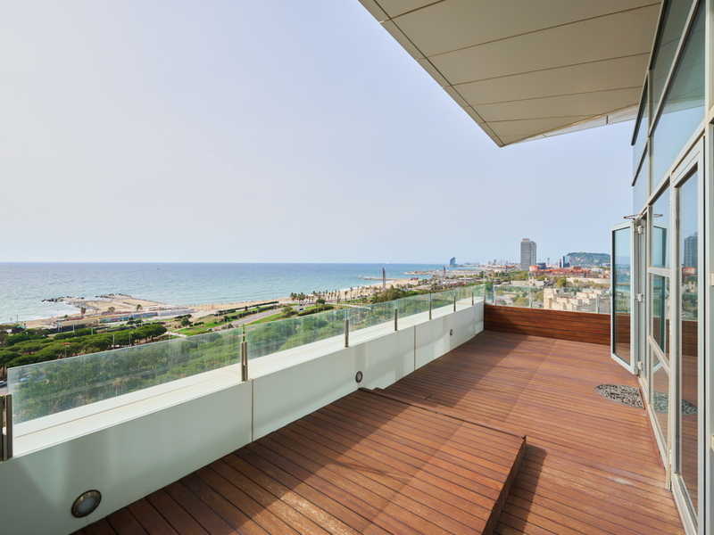Ce penthouse est une opportunité exceptionnelle de profiter d'une vue privilégiée depuis l'un des plus hauts immeubles résidentiels de Barcelone. Vous pourrez voir la mer et toute la ville depuis cet imposant point de vue : un luxueux penthouse de 250 m2 construits à l'intérieur et 120 m2 de terrasse avec jacuzzi. Il est situé dans un bâtiment moderne construit en 2010, tout près de la plage de la Barceloneta, avec un accès facile à la côte et à 20 minutes en voiture de l'aéroport. Il bénéficie également de la proximité du centre historique de la ville, avec tous ses services, ses boutiques et ses attractions culturelles, du One Ocean Club et de l'Hôtel Vela. L'accès au penthouse se fait directement par l'ascenseur, avec une clé privée. Nous sommes accueillis par un grand hall d'entrée qui mène à l'espace jour très spacieux, composé d'un salon, d'une salle à manger et d'une magnifique cuisine ouverte en bois fait main et en marbre naturel, avec les meilleurs appareils électroménagers. Le salon a un accès direct à la spectaculaire terrasse, avec vue sur la mer et la ville entière, qui comprend un grand jacuzzi. L'espace nuit est présidé par une grande chambre à coucher principale avec salle de bains privative offrant une vue incroyable sur la mer, un dressing en U et une salle de bains privative spacieuse avec baignoire en marbre et système d'hydromassage. En outre, il y a deux chambres à coucher avec salle de bains et armoires encastrées. De l'autre côté, un escalier en colimaçon mène à l'appartement des invités, qui se compose d'un grand salon avec de belles vues sur la mer, d'une cuisine ouverte, d'une chambre séparée et d'une salle de bains attenante. Il peut être utilisé pour le personnel ou comme maison d'hôtes. Ce luxueux penthouse a été récemment rénové au plus haut niveau par un cabinet d'architectes renommé, avec des matériaux naturels de la plus haute qualité, des tons doux et des nuances de design raffiné. En outre, l'ensemble de la propriété dispose de grandes fenêtres qui offrent des vues incroyables depuis presque toutes les pièces. Enfin, l'appartement comprend deux places de parking et une salle de stockage. Chez Bcn Advisors, nous vous fournissons des conseils personnalisés pour l'achat d'appartements de luxe à Barcelone. Découvrez les propriétés disponibles et prenez la bonne décision.