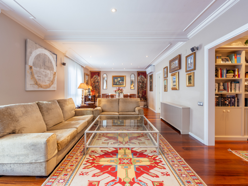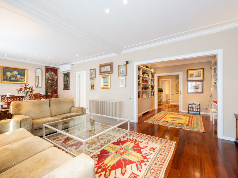 Appartement situé dans l'une des 4 rues du Turó Park, l'un des lieux résidentiels les plus convoités de Barcelone. Il est situé au 5ème étage réel, ce qui le rend très lumineux et calme. Avec 245 m2 construits et 5 chambres, c'est une option idéale pour les grandes familles qui cherchent une propriété de haut standing à Barcelone. À l'entrée, un grand hall nous mène sur la gauche à un espace ouvert actuellement utilisé comme bibliothèque, à travers lequel nous atteignons le salon-salle à manger. Il est très spacieux, reçoit beaucoup de lumière naturelle, est orienté sud-ouest et donne sur la rue. Par la salle à manger, on accède à la cuisine équipée d'appareils électroménagers, qui dispose d'un espace pour une table. Elle dispose d'une buanderie attenante, d'un grand espace de rangement et d'un garde-manger. Enfin, il y a des toilettes pour les invités et la chambre de service avec sa propre salle de bains. De l'autre côté de la propriété, on trouve un espace ouvert aménagé en bureau puis en espace nuit. Il se compose de la chambre principale en suite avec salle de bains et dressing, de 3 chambres doubles (dont une donnant sur la cour avec une orientation nord-ouest) et d'une salle de bains séparée. La salle de bains principale est équipée d'un sauna. L'appartement est équipé de parquet, de l'air conditionné chaud/froid (par conduits dans la zone nuit et par split dans la zone jour) et des stores mécaniques. Il est situé dans un bâtiment noble classique avec concierge, 2 ascenseurs et une salle de stockage. Le quartier environnant offre de nombreux magasins, services, écoles internationales et écoles de commerce. Il est également très bien relié au centre ville par Ferrocarrils de la Generalitat et bus. N'hésitez pas à contacter Bcn Advisors pour demander une visite de cet appartement.