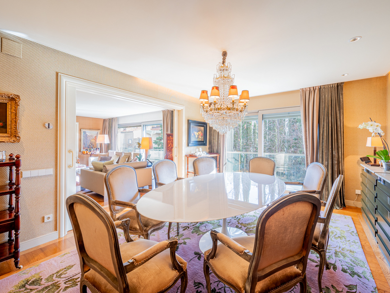 Cette superbe propriété haut de gamme, rénovée avec des matériaux de très grande qualité, occupe tout le deuxième étage de l'immeuble, avec une superficie totale de 400 m² construits. Il s'agit d'une opportunité exceptionnelle de profiter d'une vie de luxe dans l'un des meilleurs quartiers résidentiels de la partie haute de Barcelone, le quartier de Les Tres Torres. Vivre dans cet appartement, c'est comme vivre dans une maison, mais avec une excellente qualité de vie et sans les problèmes d'insécurité et d'éloignement du centre-ville. Étant entièrement extérieur, tout l'appartement est extrêmement lumineux, créant une sensation unique, accueillante, de paix et de bien-être. La zone jour est un grand espace divisé en 3 pièces magnifiques : salon, salle à manger et cuisine, où vous pourrez profiter de votre quotidien avec un maximum de confort. De plus, il y a une buanderie indépendante avec un étendoir. La zone nuit compte au total 5 chambres et 5 salles de bains. Elle est dominée par deux spectaculaires chambres en suite, toutes deux avec dressing et salle de bains privative. De plus, il y a 2 grandes chambres doubles, une salle de bains indépendante et des toilettes. Enfin, nous trouvons une chambre en suite pour le service. L'appartement est équipé d'un système domotique qui permet de programmer tous les services, de parquet, de la climatisation et du chauffage au sol. La climatisation est individuelle dans toutes les pièces. Il y a deux chaudières pour le chauffage et l'eau chaude, synchronisées individuellement, qui fonctionnent en alternance toutes les 4 heures, de sorte qu'en cas de panne de l'une d'elles, le service ne soit jamais interrompu. Le prix comprend la moitié de l'un des deux étages de parking du bâtiment, un espace pouvant accueillir 5 voitures (3 grandes et 2 petites) ou 4 grandes voitures, ainsi que 2 grands débarras. Il y a également un parking extérieur d'environ 400 m2 pour les résidents de l'immeuble et les visiteurs. L'immeuble ne compte que 4 voisins et un appartement par étage. Il a été construit avec les meilleurs matériaux et les appartements ont été vendus à des familles de confiance du promoteur de sa construction, un ancien maire de Barcelone. Il dispose d'un magnifique espace vert extérieur. Le bâtiment dispose d'une conciergerie avec un responsable et 3 portiers qui se relaient pour assurer la surveillance 24 heures sur 24 et 365 jours par an. Ils s'occupent de l'entretien de toutes les installations, du jardin, de la réparation de tout dysfonctionnement ou panne, et du lavage des voitures pendant la nuit. De plus, il dispose d'un système de vidéosurveillance périmétrique dans toute la zone extérieure. Les environs comptent de nombreux commerces, services, espaces verts, écoles internationales, écoles de commerce, centres médicaux privés et deux stations de métro Ferrocarrils de la Generalitat qui relient le centre de Barcelone en quelques minutes. N'hésitez pas à contacter Bcn Advisors pour visiter ce bien immobilier.