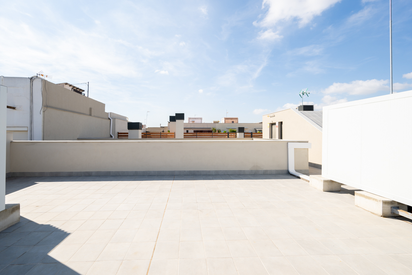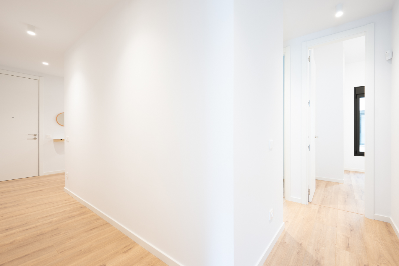 Chaque détail a été soigneusement sélectionné pour offrir un maximum de confort, d’efficacité et de style. Le système aérothermique Panasonic réduit la consommation d’énergie jusqu’à 70 %, tandis que les fenêtres Climalit à double vitrage et les menuiseries en aluminium à rupture de pont thermique garantissent une excellente isolation thermique et acoustique. Les sols combinent du parquet stratifié AC5 dans les pièces principales et du grès cérame dans les salles de bains. La cuisine est équipée d’appareils électroménagers Siemens, les salles de bains de robinetterie Rovira, et la porte d’entrée dispose d’une serrure de sécurité à trois points et d’un interphone vidéo.