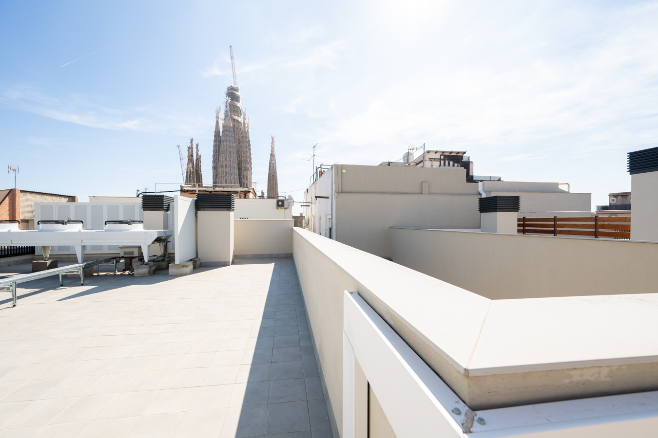 Appartement en étage haut dans un immeuble neuf avec terrasse dans l’Eixample