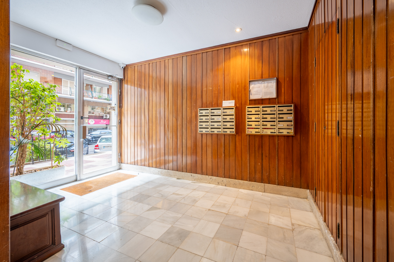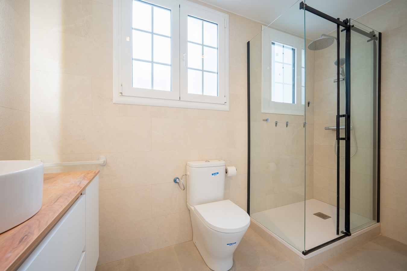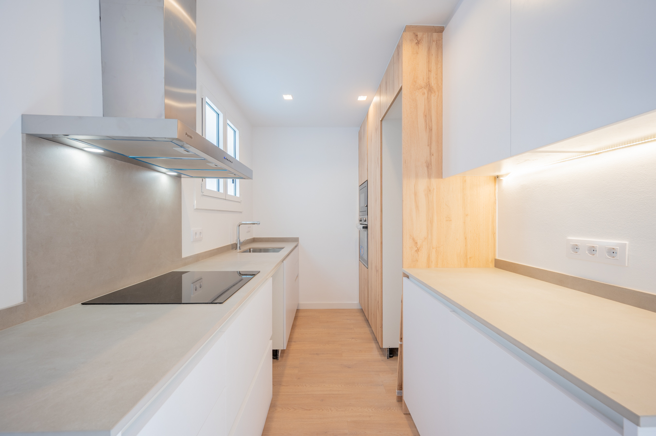 Le hall d’entrée nous conduit à la zone jour, formée par un salon-salle à manger accueillant et lumineux et une cuisine semi-ouverte qui occupe son propre espace séparé et est équipée d’une plaque de cuisson à induction, d’un four et d’un micro-ondes. Le salon a accès à une agréable terrasse donnant sur la rue.