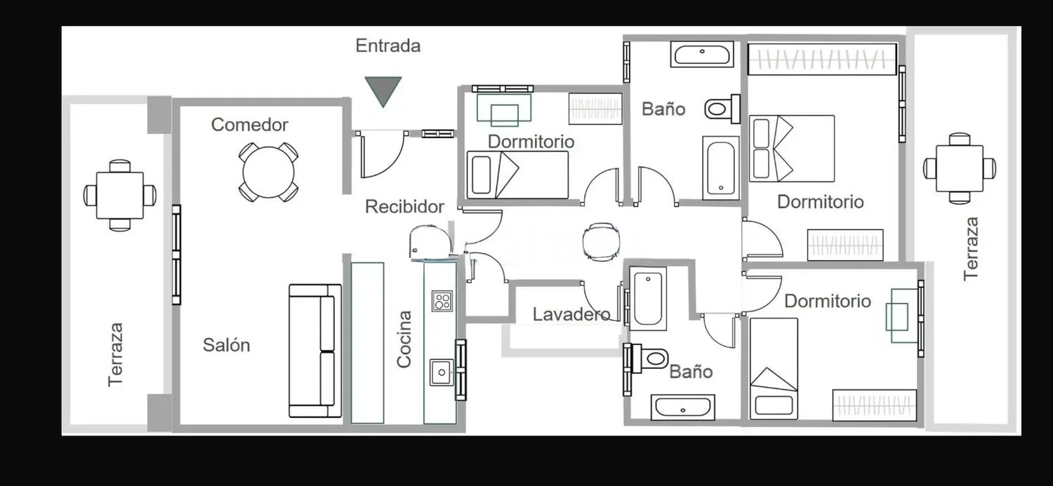 Le penthouse a 89 m2 d’intérieur construit et 2 terrasses de 12 m2 et 11 m2, qui sont idéales pour profiter des repas en plein air ou simplement se détendre. Il est situé dans une section de la rue sans circulation qui est uniquement utilisée pour le stationnement, de sorte qu’il n’y a pratiquement pas de bruit.