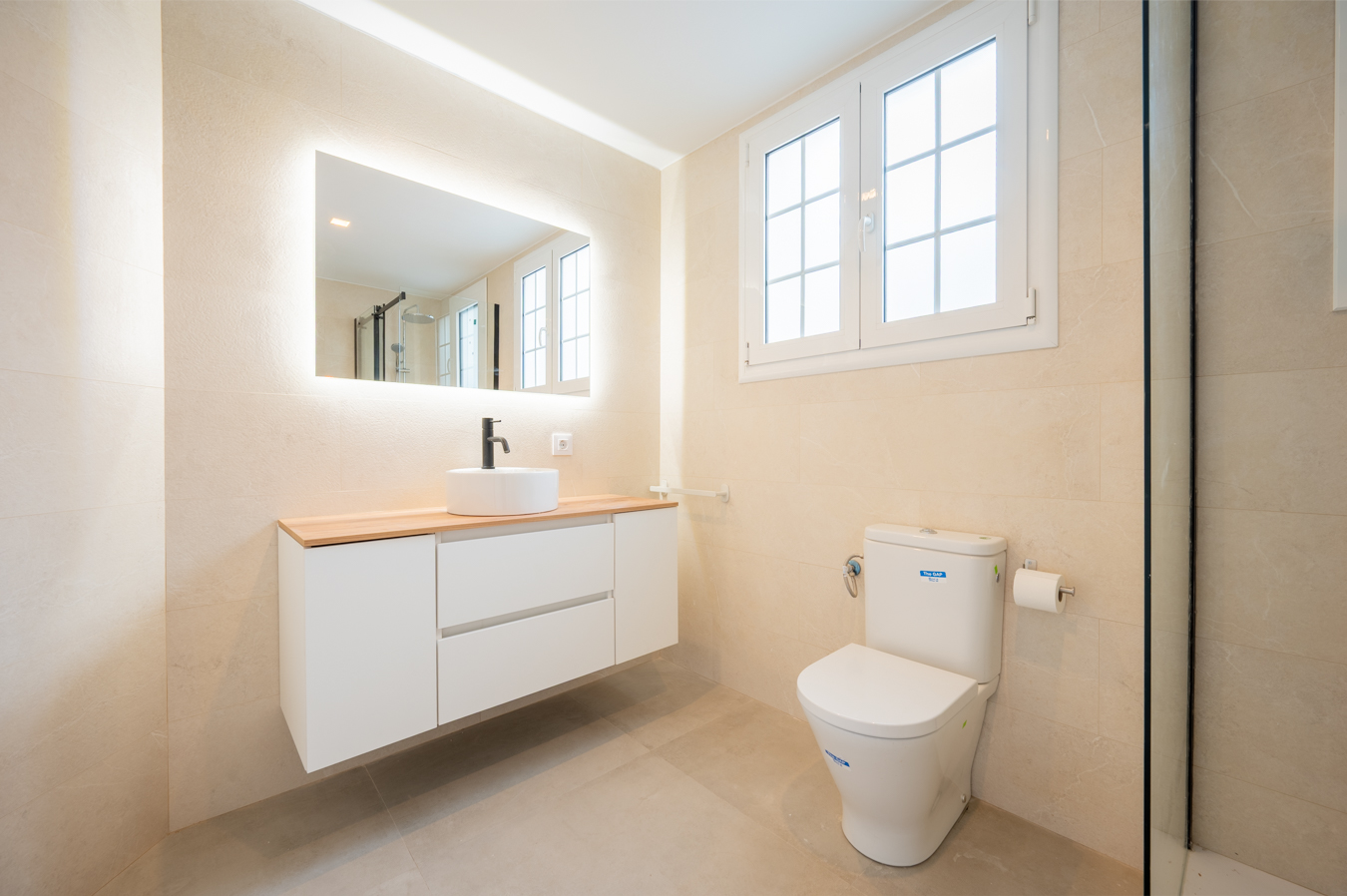 L’appartement est équipé d’un chauffage par radiateurs, d’une climatisation par splits dans le salon et la chambre principale, d’une nouvelle installation électrique et d’eau et d’une menuiserie en aluminium. L’immeuble dispose d’un ascenseur.