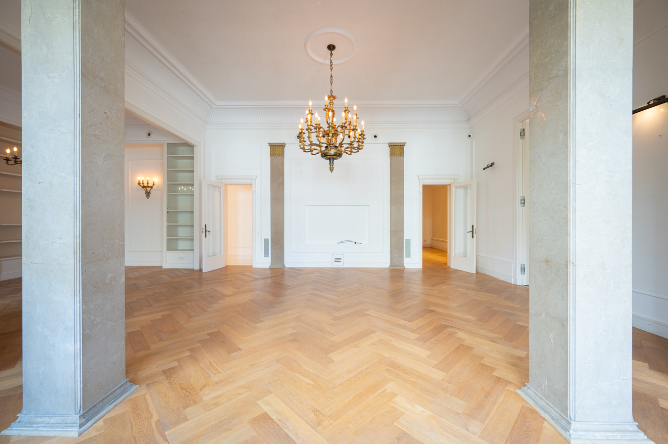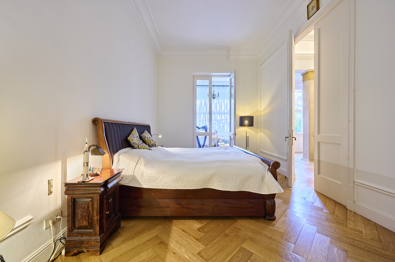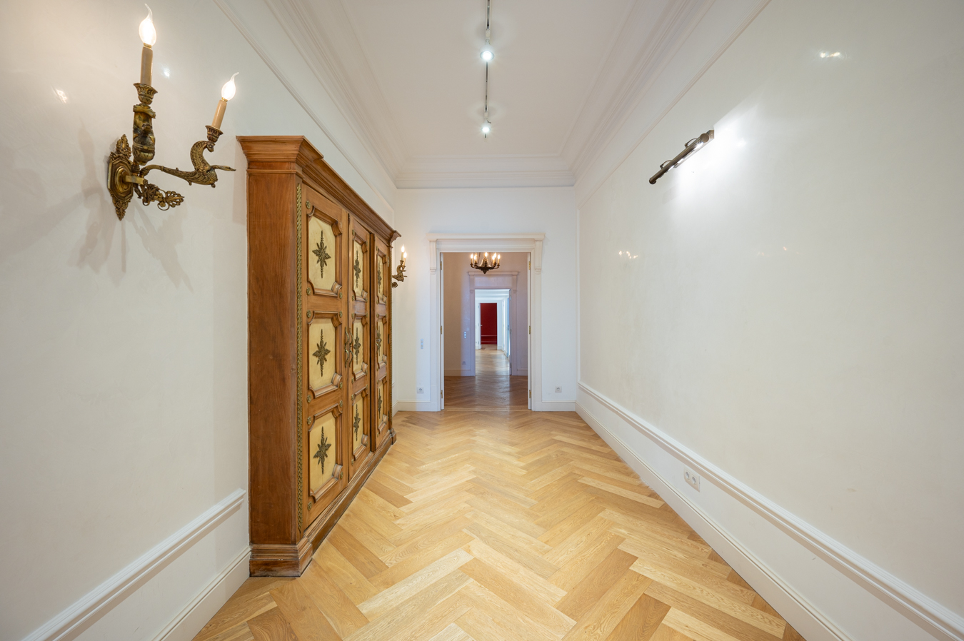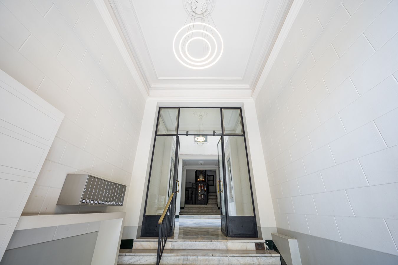 L’appartement est situé au premier étage « Principal » d’un bâtiment royal de 1939 en parfait état avec ascenseur et terrasse commune sur le toit. Il est équipé de la climatisation, du chauffage par radiateurs, de parquets et de stores électriques.