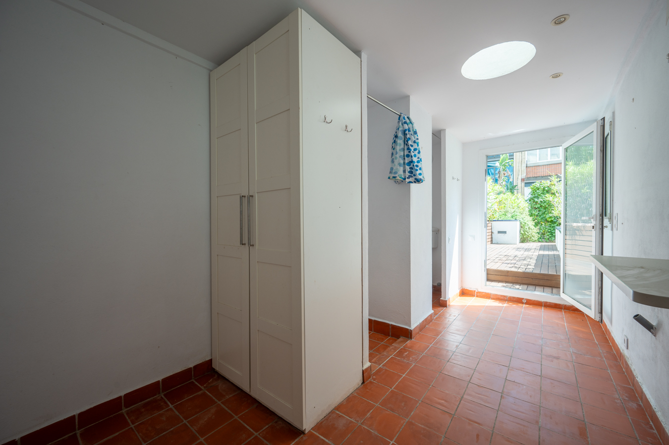 Duplex penthouse de 256 m2 construits intérieures et terrasse de 42 m2, entièrement rénové avec des matériaux de première qualité. Il est situé à côté du Parc del Nord, un point stratégique entre l'Eixample et le Poblenou, également très proche du Parc de la Ciutadella et du Born, à 15-20 minutes à pied de la Plaza Catalunya et du Paseo de Gracia, et à une courte distance de marche de la plage. Ce penthouse est situé aux 6ème et 7ème étages de l'immeuble, avec des escaliers intérieurs qui les relient et une entrée indépendante pour chacun d'entre eux. L'étage supérieur est la zone de jour, un grand espace ouvert de 66 m2 qui réunit le salon, la salle à manger et la cuisine ouverte, avec accès à la terrasse. En outre, il est possible de séparer le salon et la salle à manger de la cuisine grâce à une élégante cloison en verre. La cuisine est équipée d'appareils électroménagers haut de gamme, dont un grand four, un grill et un chauffe-plats. Cet étage comprend également une toilette pour les invités, auxquelles on accède par un vestiaire situé à l'entrée. La lumière naturelle envahit la pièce grâce aux grandes fenêtres, qui donnent accès à la fantastique terrasse offrant des vues panoramiques sur la ville. C'est l'endroit idéal pour organiser des réunions en plein air, prendre des repas ou simplement se détendre. L'étage inférieur est la zone de couchage, avec 4 très grandes chambres. La suite parentale de 27 m2 dispose d'un grand dressing et d'une salle de bains avec cabine de douche. Il y a également 2 chambres doubles de 21 m2 et 19 m2 avec armoires encastrées, qui partageant une salle de bain et, comme la chambre principale, ont une vue fantastique sur la ville. Enfin, une chambre de 13 m2 s'ouvre sur un patio intérieur très lumineux et une salle de bain séparée. Ce penthouse est équipé des meilleures qualités. Il dispose de parquet en chêne naturel, de la climatisation, d'un système aérothermique avec récupération de chaleur, de stores mécanisés, de portes laquées, d'une installation électrique et de bien d'autres détails. Il comprend également 2 salles de stockage de 9 m2 dans le sous-sol de l'immeuble et il est possible d'acquérir des places de parking dans le bâtiment voisin. Il s'agit d'une opportunité unique de vivre dans un endroit central mais calme, avec tous les services, magasins, restaurants et transports publics à proximité. N'hésitez pas à contacter Bcn Advisors pour visiter ce penthouse.
