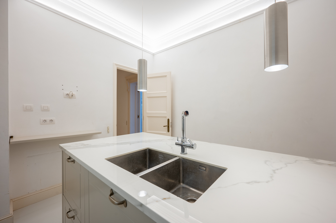 Impressionnant appartement rénové en étage élevé avec terrasse dans l’Eixample