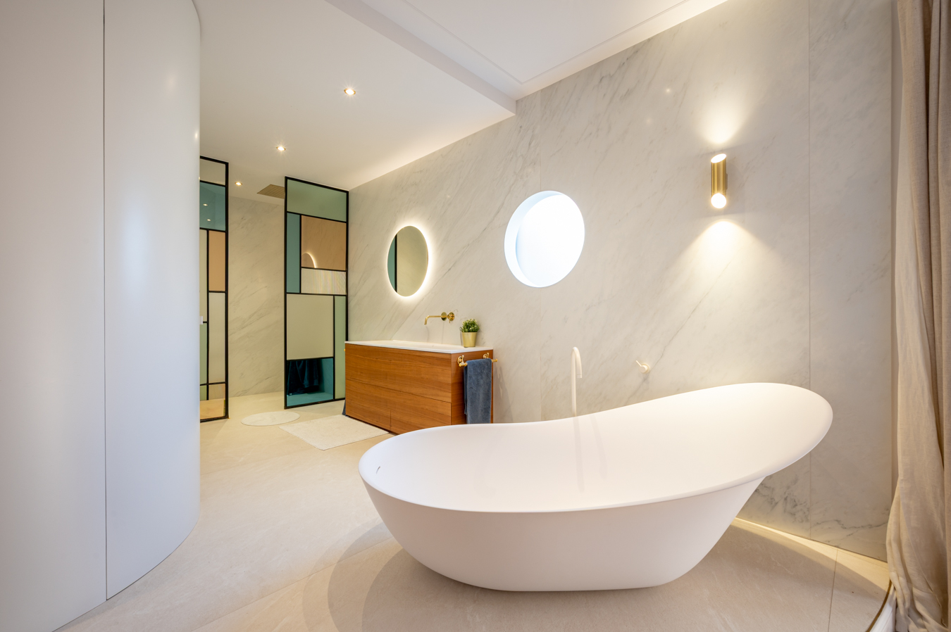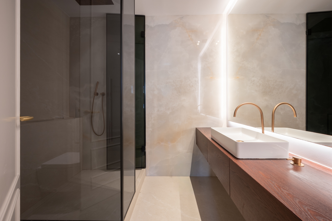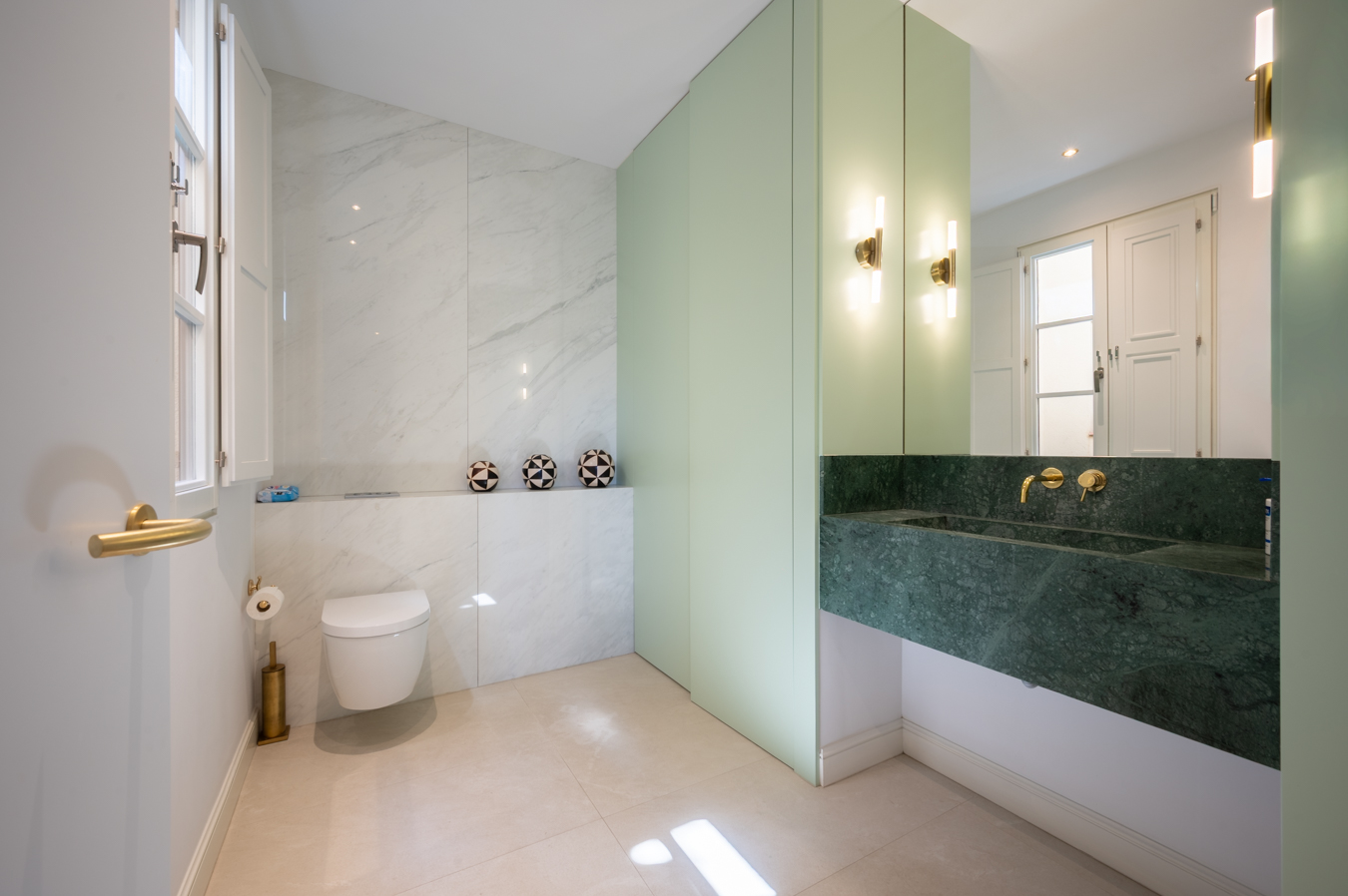 La partie nuit comprend 3 chambres doubles en suite (chacune avec sa salle de bains privée), un bureau et une salle de bains indépendante. Il serait possible d’ajouter une quatrième chambre en effectuant quelques travaux. La chambre principale est très calme. Elle dispose d’un grand dressing, d’une baignoire îlot, d’une douche et d’un accès à un balcon donnant sur une cour intérieure. Les deux autres chambres donnent sur la rue : l’une dispose d’un balcon et l’autre d’une grande baie vitrée.