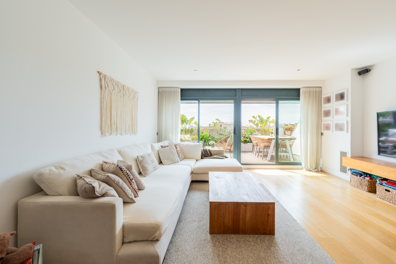 Ce penthouse entièrement rénové à neuf est situé à côté du Parc de la Ciutadella, dans l’un des meilleurs emplacements du quartier d’El Born. Il se trouve dans un immeuble historique de la fin du XIXe siècle, et la rénovation associe le charme de la tradition à des matériaux et finitions haut de gamme, offrant luxe et confort. Le penthouse dispose de 101 m² construits intérieurs et de deux terrasses de 37 m² et 17 m². Le salon-salle à manger avec cuisine intégrée est très spacieux, lumineux et calme, car il donne sur le patio intérieur d’îlot orienté sud-est. Il offre un accès à une terrasse couverte de 17 m², idéale pour se détendre en plein air tout en profitant de vues sur le centre historique et le marché du Born. L’espace nuit comprend 2 chambres et 2 salles de bains. La chambre principale est en suite avec sa propre salle de bains et donne accès à une superbe terrasse découverte de 37 m² donnant sur la rue, orientée nord-ouest, avec un sol en bambou. Ce sera votre coin préféré pour vous détendre loin de l’agitation quotidienne. La seconde chambre est double et dispose en face d’une salle de bains indépendante. Le bien est équipé d’éléments de haute qualité tels que parquet en chêne en point de Hongrie, climatisation réversible par conduits via un système aérothermique avec contrôle intelligent (permettant de zoner la climatisation et de la gérer depuis un écran dans le salon ou une application mobile), nouvelles fenêtres à double vitrage, électroménagers intégrés Bosch, etc. L’immeuble dispose d’un ascenseur. Vivre dans un penthouse dans le quartier du Born à Barcelone offre une combinaison parfaite d’histoire, de modernité et d’exclusivité. Vous profiterez de vues imprenables sur la ville, de terrasses ensoleillées et d’une grande tranquillité à l’écart de l’agitation des rues. De plus, vous serez entouré de rues médiévales, de boutiques, de restaurants et d’une vie culturelle dynamique. Sa proximité avec le Parc de la Ciutadella et la mer en fait un lieu idéal pour ceux qui recherchent qualité de vie et charme urbain. N’hésitez pas à contacter Bcn Advisors pour découvrir votre futur chez-vous.