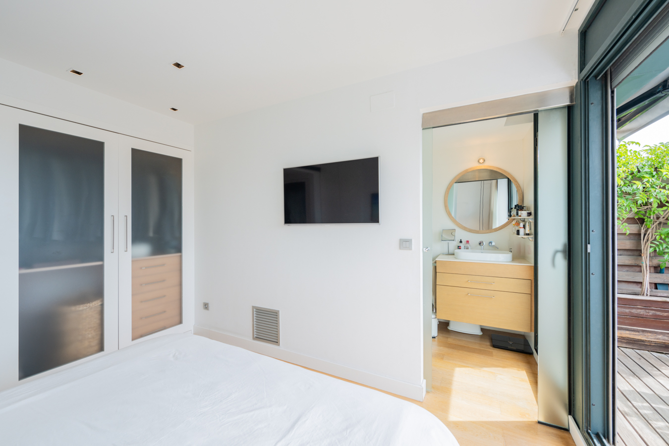 Le deuxième étage est le coin nuit, avec deux chambres à coucher avec salle de bains privative. La chambre principale dispose d’un dressing et d’un accès à une terrasse de 10 m2, également orientée au sud et offrant une vue magnifique. L’autre chambre est double et dispose d’une armoire. Les deux terrasses sont le joyau de ce penthouse, car c’est un véritable luxe de pouvoir profiter d’un espace en plein air avec des vues sur l’ensemble de Barcelone dans une rue aussi emblématique que la Rambla Catalunya, un emplacement de choix dans la ville.