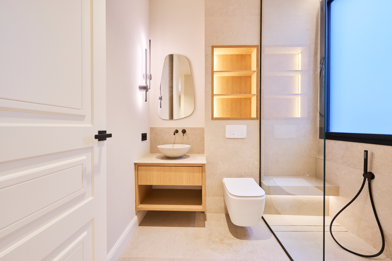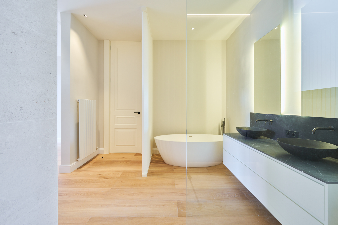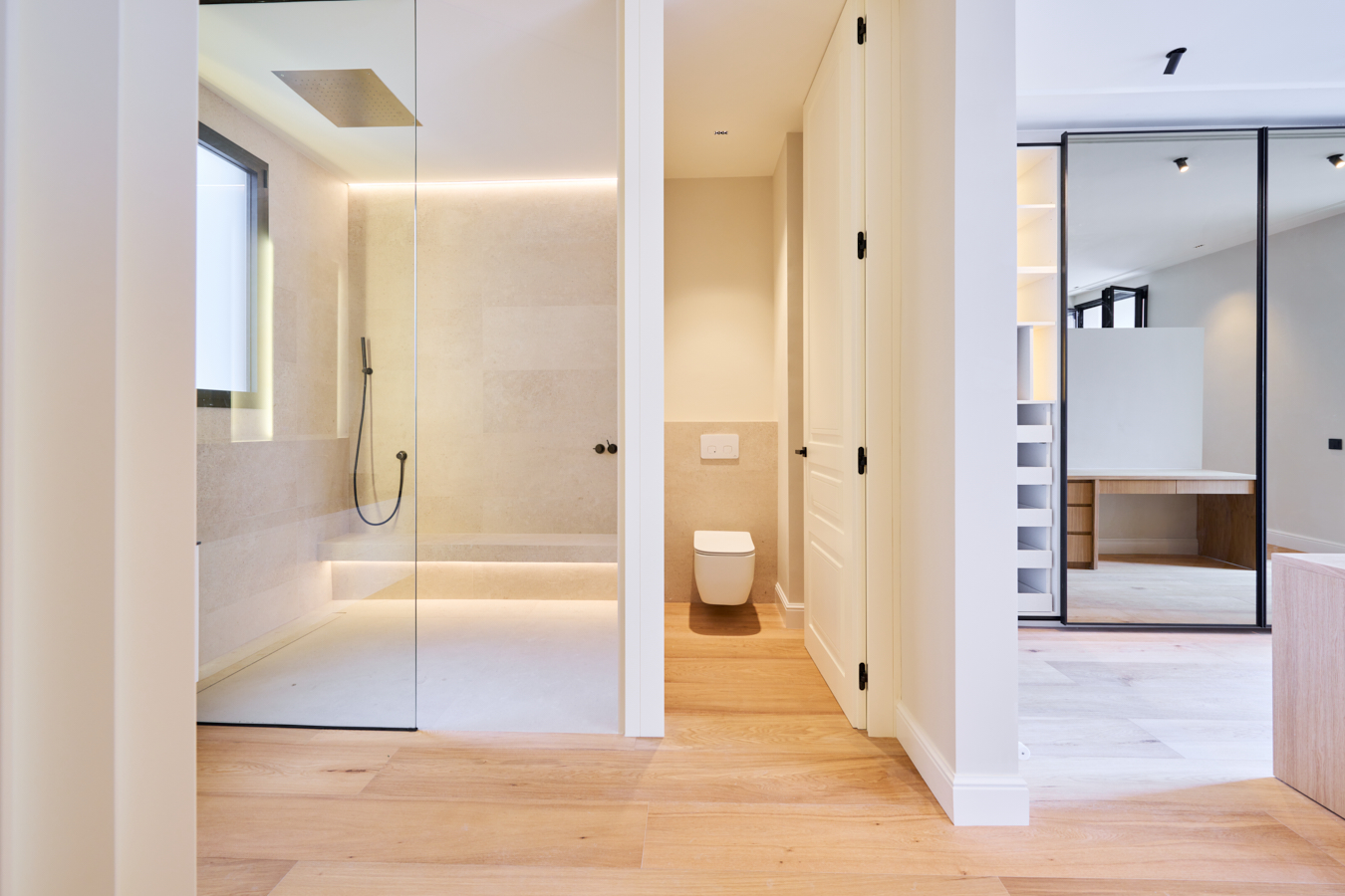 La partie nuit se distingue par ses deux extraordinaires chambres en-suite, très calmes car elles sont orientées vers la cour intérieure. La suite principale dispose d’un dressing, d’une baignoire et d’une grande douche, et d’un accès à la terrasse, un espace extérieur agréable avec vue sur la cour intérieure ouverte. La deuxième chambre avec salle de bains privative dispose d’un grand dressing et d’une galerie, idéale pour créer une atmosphère plus détendue. En outre, il y a une chambre double intérieure et une salle de bains séparée.