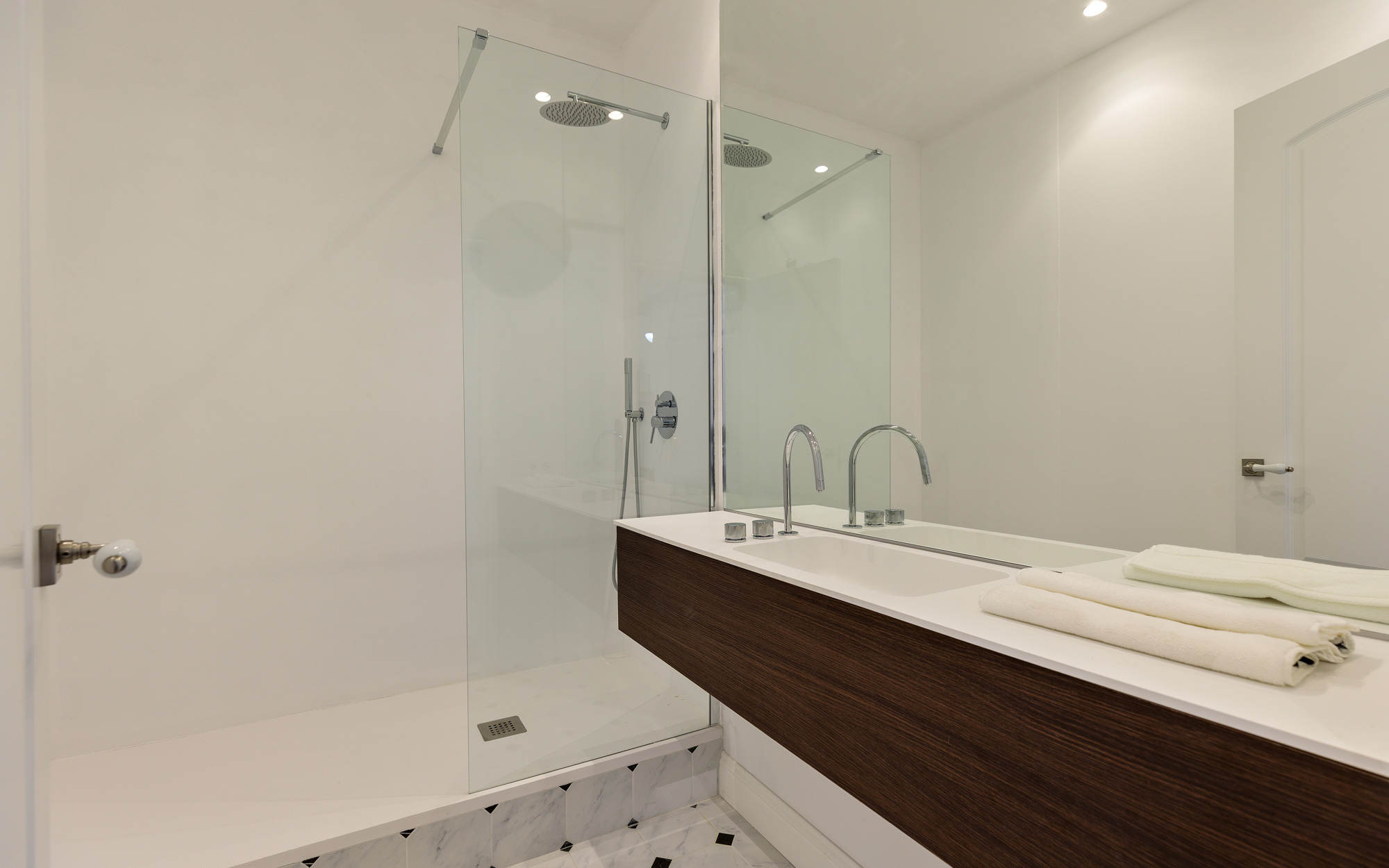 Le logement a fait l’objet d’une rénovation complète, minutieuse dans les moindres détails, qui en a fait un logement raffiné et exclusif. Il est équipé de sols de haute qualité, de menuiseries soigneusement sélectionnées et d’une climatisation réversible par conduits.