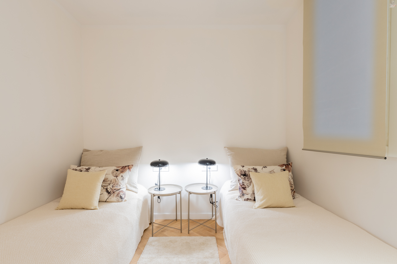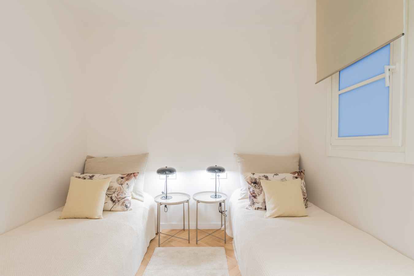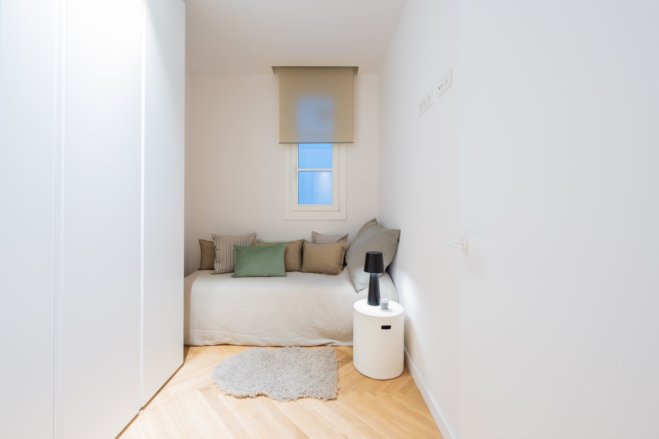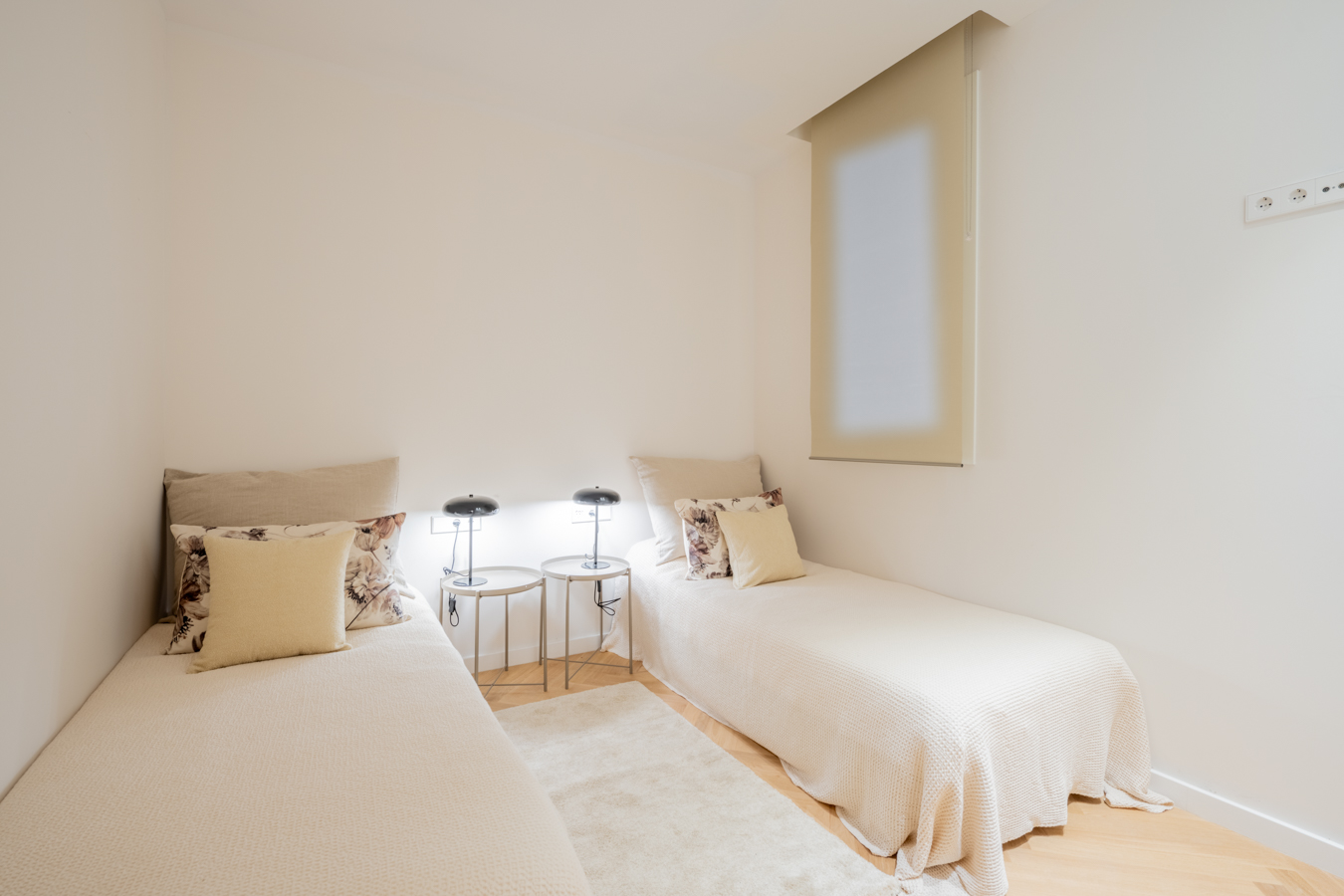L’espace nuit comprend trois chambres à coucher. L’exceptionnelle suite parentale dispose d’un bureau à l’entrée, qui sépare la salle de bains privée de la chambre à coucher. Elle dispose d’un balcon donnant sur la rue. En outre, il y a une chambre double intérieure et une chambre de taille moyenne, ainsi qu’une salle de bains séparée.