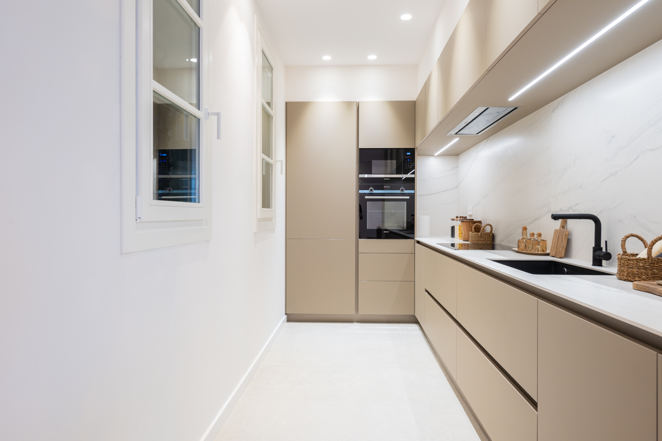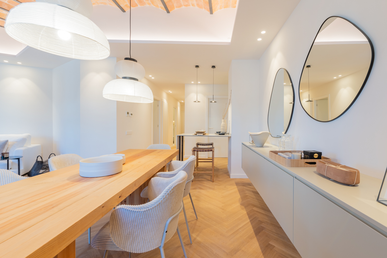 L’appartement est doté de matériaux et de finitions de la plus haute qualité, ainsi que d’une décoration intérieure soignée dans les moindres détails, qui combinera les éléments classiques des édifices royaux avec les éléments les plus modernes. Les grands espaces et la luminosité seront importants, car ils permettront de trouver un équilibre entre les éléments traditionnels tels que les plafonds voûtés catalans restaurés et le confort et les équipements d’un nouveau bâtiment: chauffage par le sol et air conditionné chaud et froid canalisé alimenté par l’aérothermie (la dernière technologie en matière de systèmes de climatisation qui permet de réaliser des économies d’énergie de 60 à 70 % par rapport aux systèmes conventionnels), appareils électroménagers Siemens haut de gamme, parquet en bois naturel, porte d’entrée avec serrure de sécurité, armoires encastrées, carrelage en porcelaine sur les murs de la salle de bains, robinetterie italienne design, éclairage LED, connexion par fibre optique, prises de signal Internet et TV, etc.