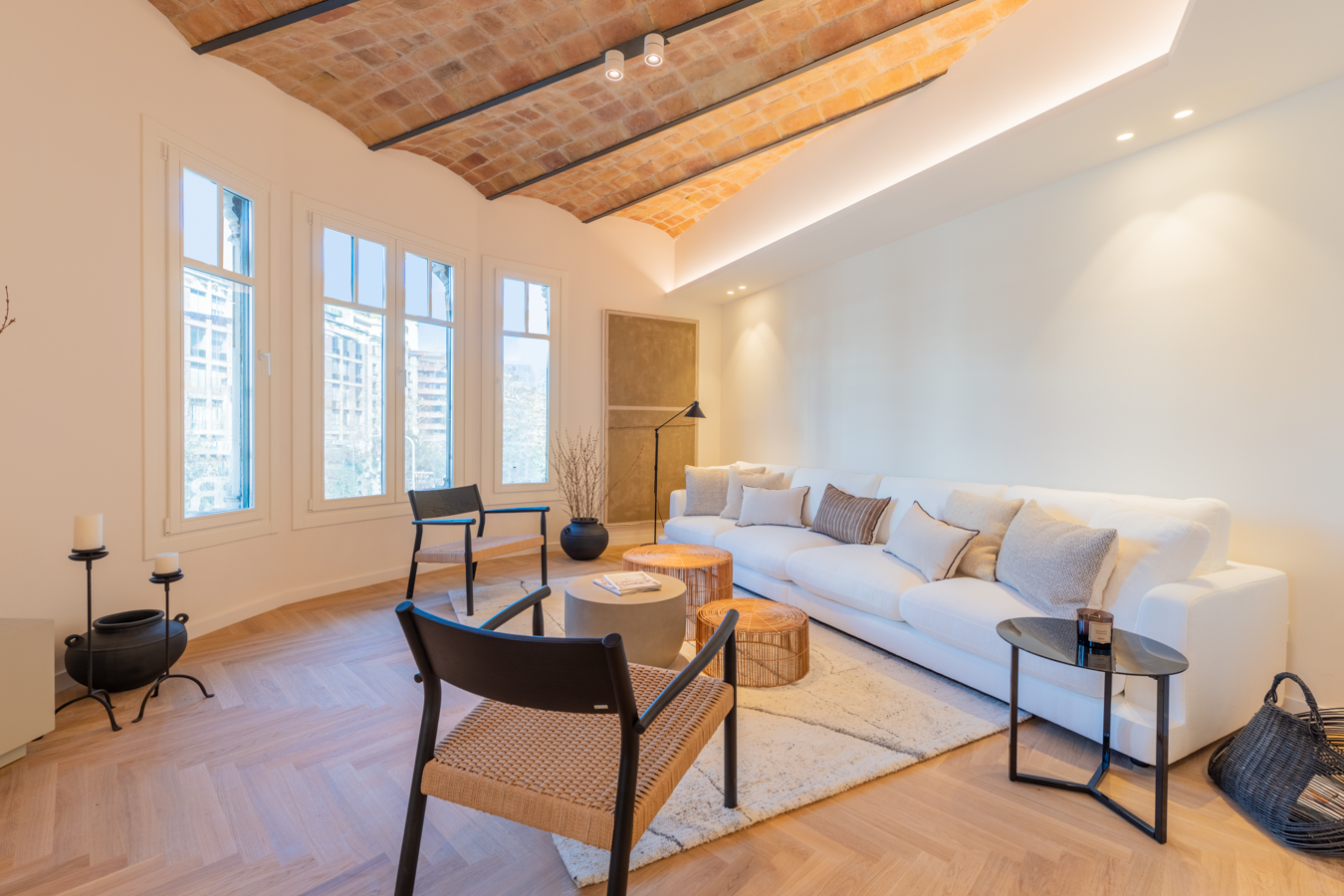 Imposant penthouse design rénové avec terrasse dans l’Eixample