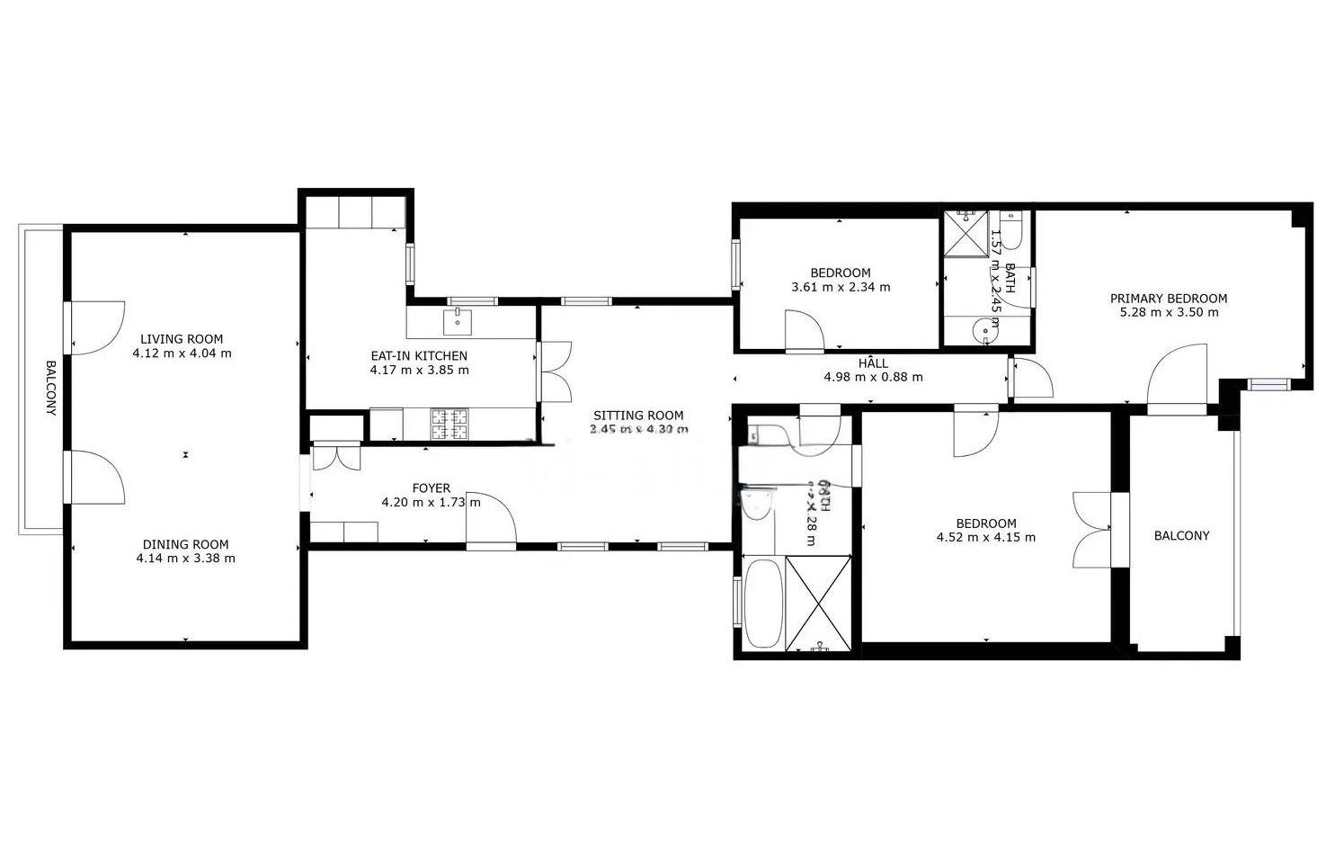 L’appartement a 162 m2 construits intérieures et se trouve au quatrième étage réel et jouit de belles vues sur la Gran Via de les Corts Catalanes et le théâtre Coliseum. Un grand hall d’entrée mène sur la gauche à un salon-salle à manger spacieux et lumineux, baigné de lumière naturelle, et donnant accès à un balcon de 2 m2 donnant sur la Gran Via. La cuisine est indépendante et équipée d’appareils AEG. Dans la partie centrale de l’appartement se trouve un grand espace ouvert qui peut être utilisé selon les souhaits de l’acheteur : bibliothèque, salle de lecture, bureau, etc.