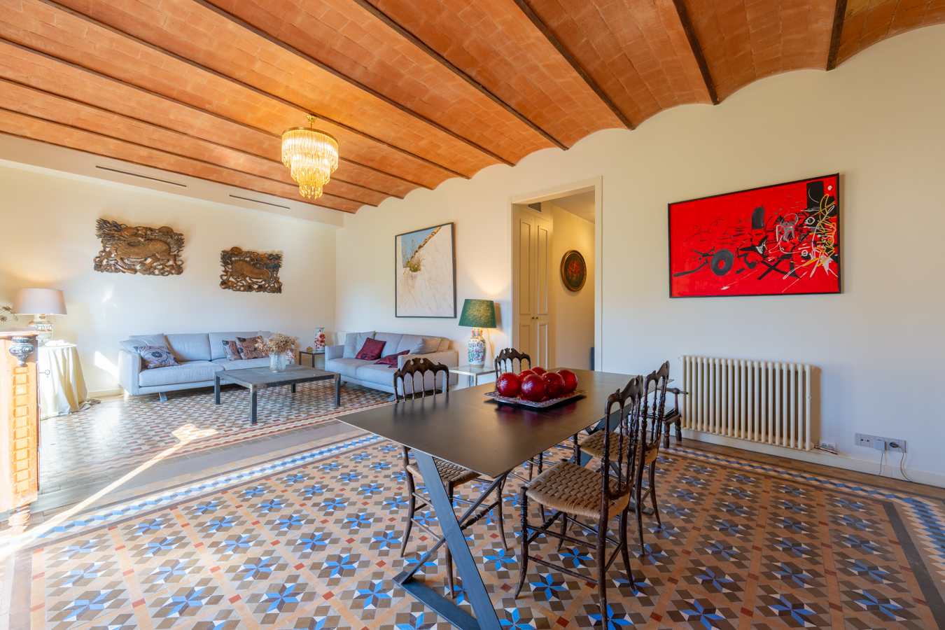 Cet appartement exceptionnel est situé rue Casanova, à quelques mètres seulement du récent piétonnier Consell de Cent, l’une des avenues les plus attrayantes et recherchées de l’Eixample. Il est entouré d’espaces verts, de cafés et d’une offre gastronomique soignée. Un emplacement qui combine parfaitement le calme d’un environnement résidentiel avec l’énergie vibrante du centre de Barcelone. Le logement se situe au premier étage d’un immeuble de caractère avec ascenseur. Il dispose de 130 m² construits intérieurs et d’une terrasse de 25 m². La distribution est confortable et fonctionnelle. Un vaste salon avec accès à une terrasse orientée est devient le cœur de la maison, complété par une cuisine semi-ouverte avec coin repas et accès à un second patio incluant un espace buanderie. La terrasse, avec revêtement en bois naturel, est un véritable havre de paix en plein centre-ville. L’espace nuit offre une spacieuse suite parentale de plus de 20 m² avec salle de bains privative, ainsi que deux chambres doubles partageant une salle de bains complète. À l’entrée se trouve également un WC de courtoisie. Toutes les chambres disposent de placards intégrés sur mesure optimisant le rangement. Le bien a été entièrement rénové, en préservant et valorisant les éléments d’origine qui cohabitent avec des finitions contemporaines de haute qualité. On distingue notamment les plafonds de 3,4 mètres avec voûte catalane, les moulures décoratives, les sols hydrauliques d’origine restaurés combinés avec un parquet en chêne naturel en point de Hongrie, ainsi que de grandes baies vitrées assurant une excellente luminosité tout au long de la journée. Le logement a été équipé de nouvelles menuiseries à double vitrage, garantissant une excellente isolation thermique et acoustique, apportant confort et tranquillité en plein centre urbain. À proximité, un parking avec places en location est disponible. Un logement prêt à emménager qui combine caractère historique, design contemporain et emplacement privilégié dans l’un des quartiers les plus demandés de Barcelone.