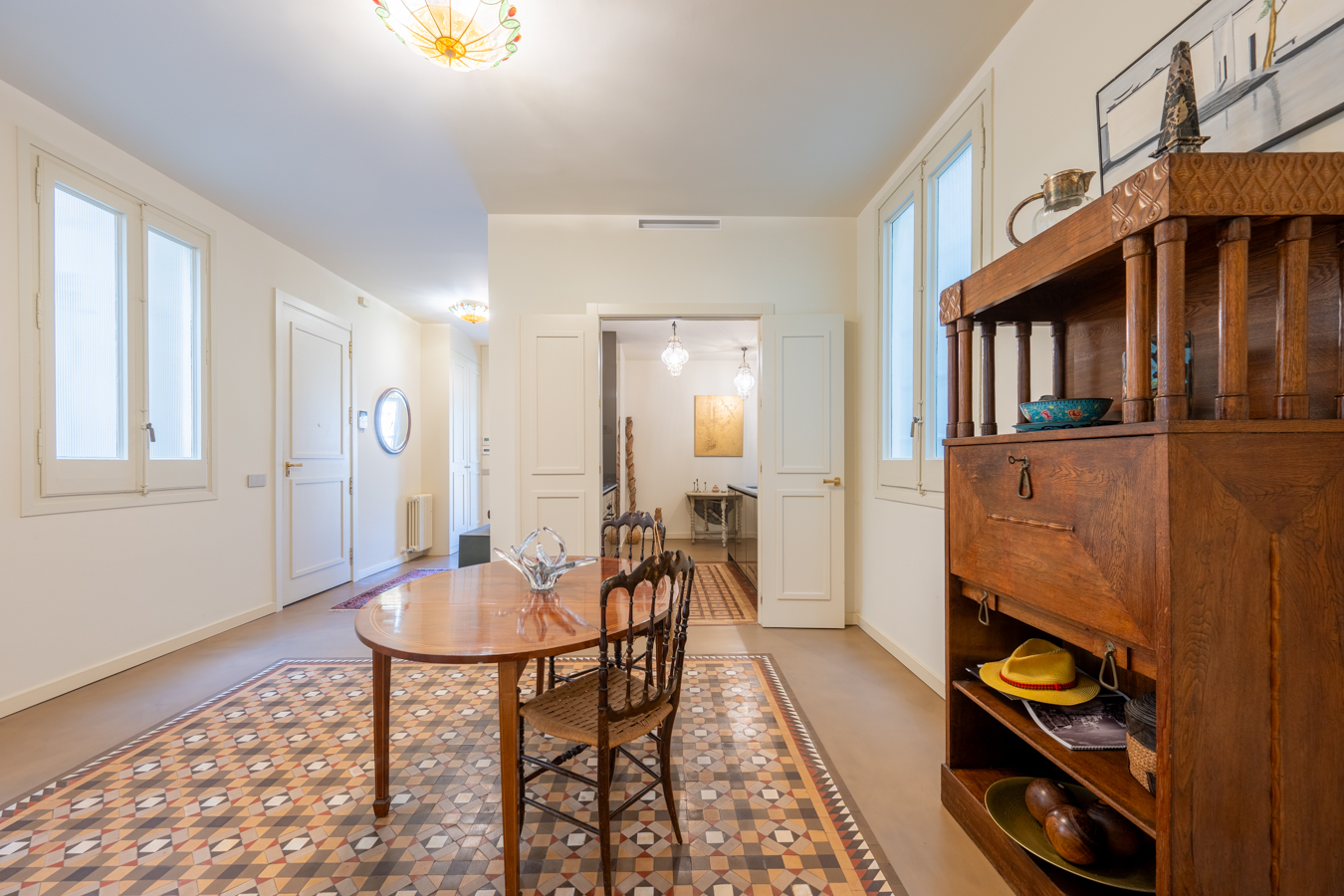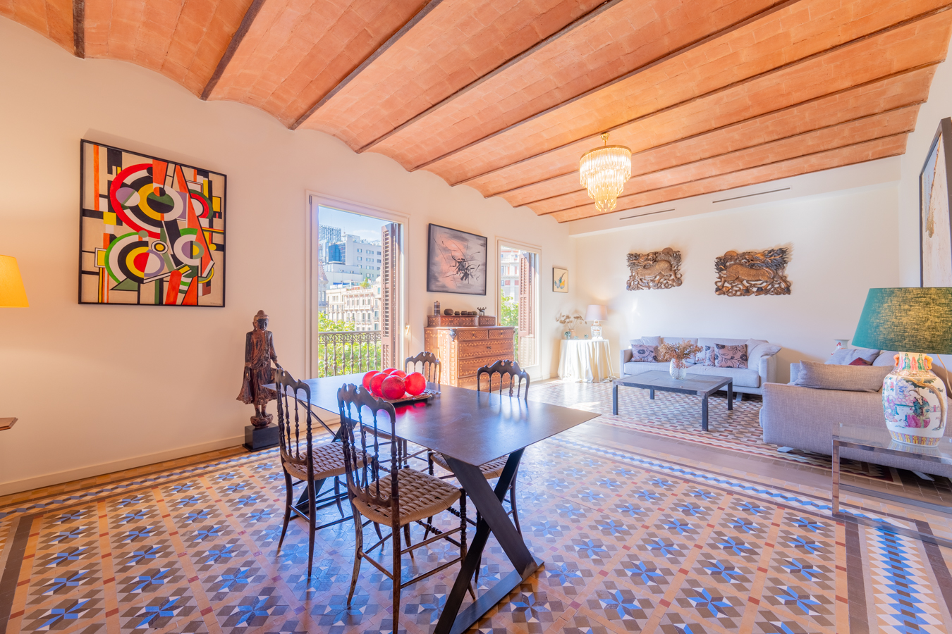 Profitez de la Barcelone la plus traditionnelle et de tous les avantages de vivre à proximité du centre-ville et du Paseo de Gracia avec ce merveilleux appartement situé dans un immeuble royal de l’Eixample. La rénovation a mis en valeur la beauté des éléments d’origine tels que les sols en mosaïque hydraulique Nolla et la voûte catalane au plafond, en y ajoutant tout le confort d’aujourd’hui.