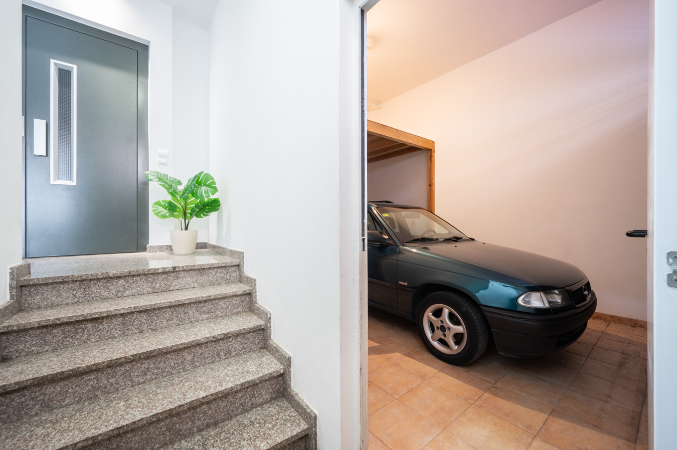 Le rez-de-chaussée, actuellement aménagé en garage couvert pouvant accueillir 2 véhicules et comprenant un espace pouvant servir de bureau ou de cellier, ouvre la voie à de multiples possibilités, allant de la redéfinition de l’entrée principale à son intégration dans le logement.