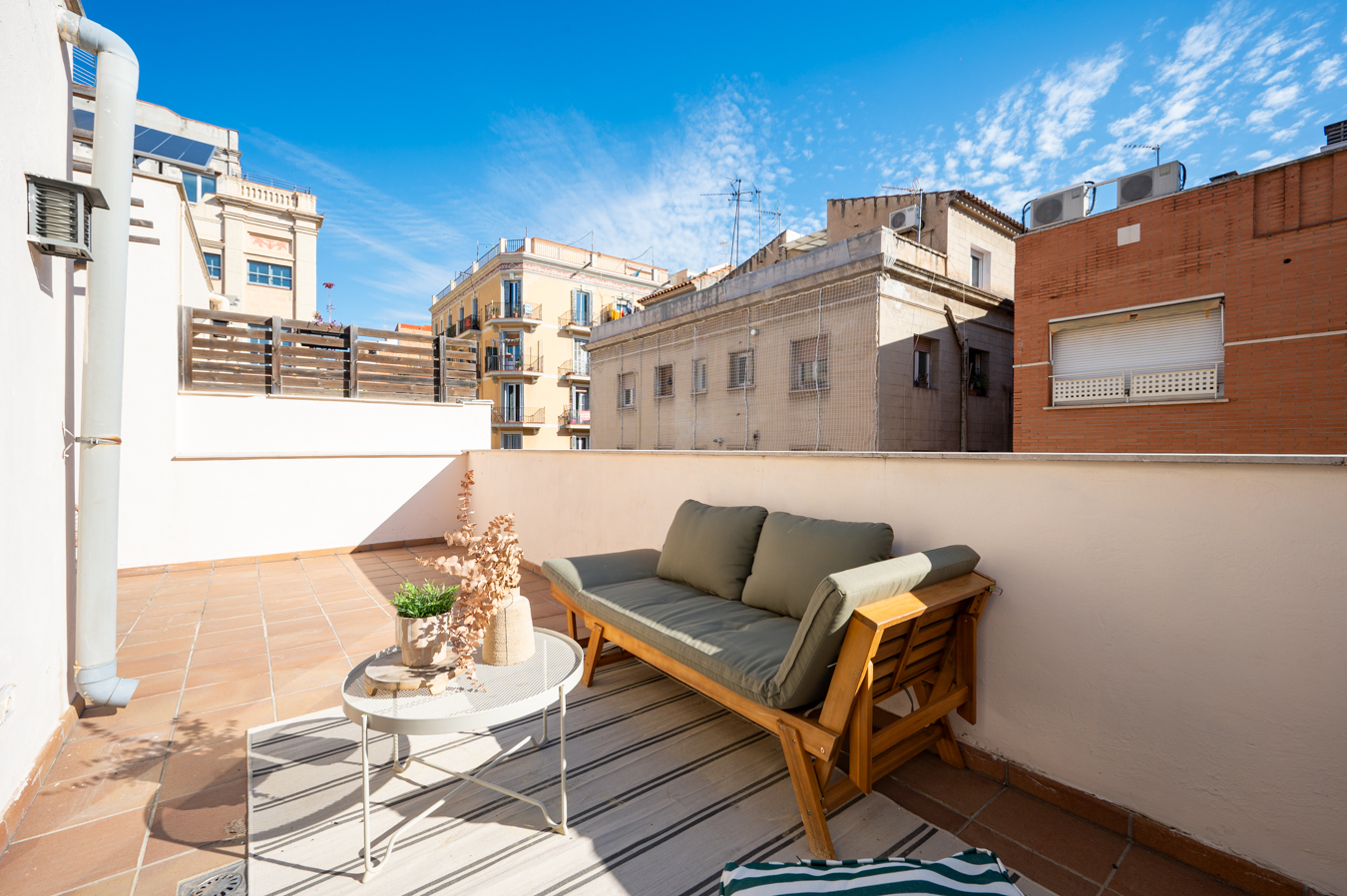 Le dernier étage dispose d’une agréable terrasse de 30 m² ensoleillée toute la journée et offrant une vue dégagée, un espace extérieur rare dans le quartier et parfait pour profiter du plein air en toute intimité.