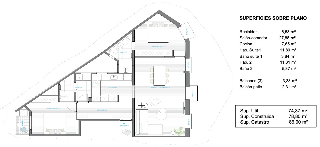 * Le prix indiqué ne comprend pas les taxes (ITP pour les propriétés d’occasion ou TVA et AJD le cas échéant pour les propriétés de nouvelle construction), ni les frais de notaire, d’enregistrement foncier, d’agence administrative, ni aucun autre frais lié à la transaction qui, conformément à la réglementation en vigueur, sont à la charge de l’acheteur. Les honoraires d’agence immobilière seront pris en charge par le vendeur, conformément au mandat signé.