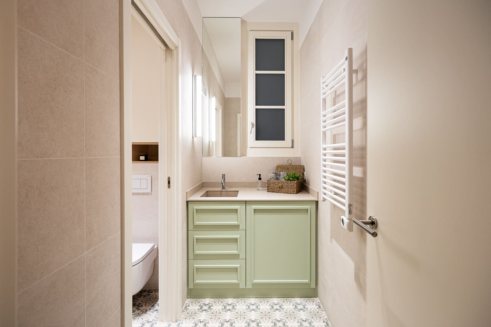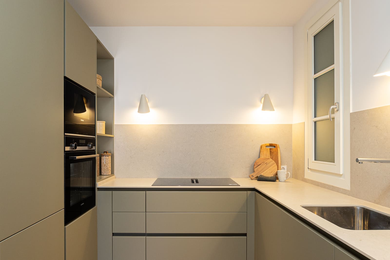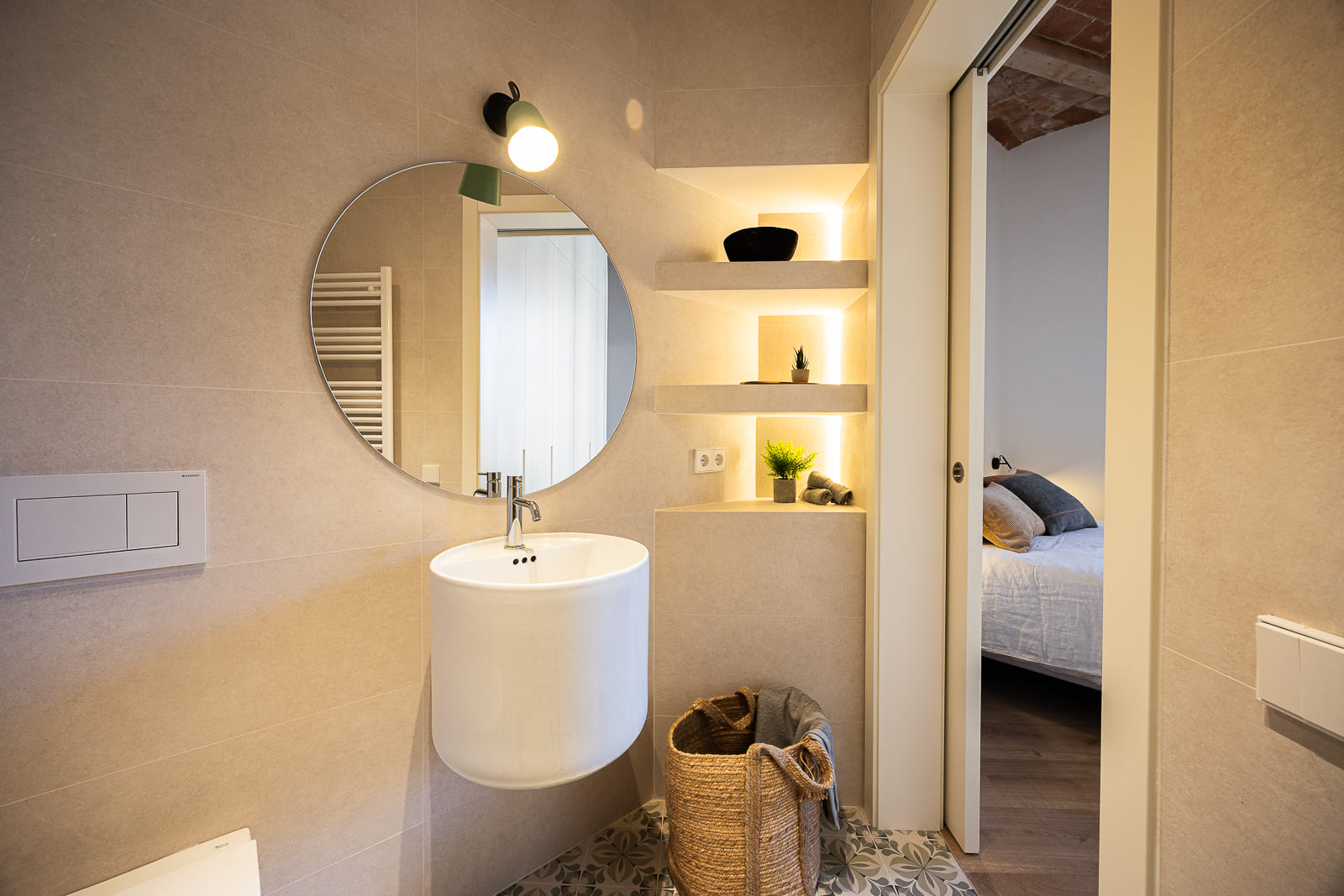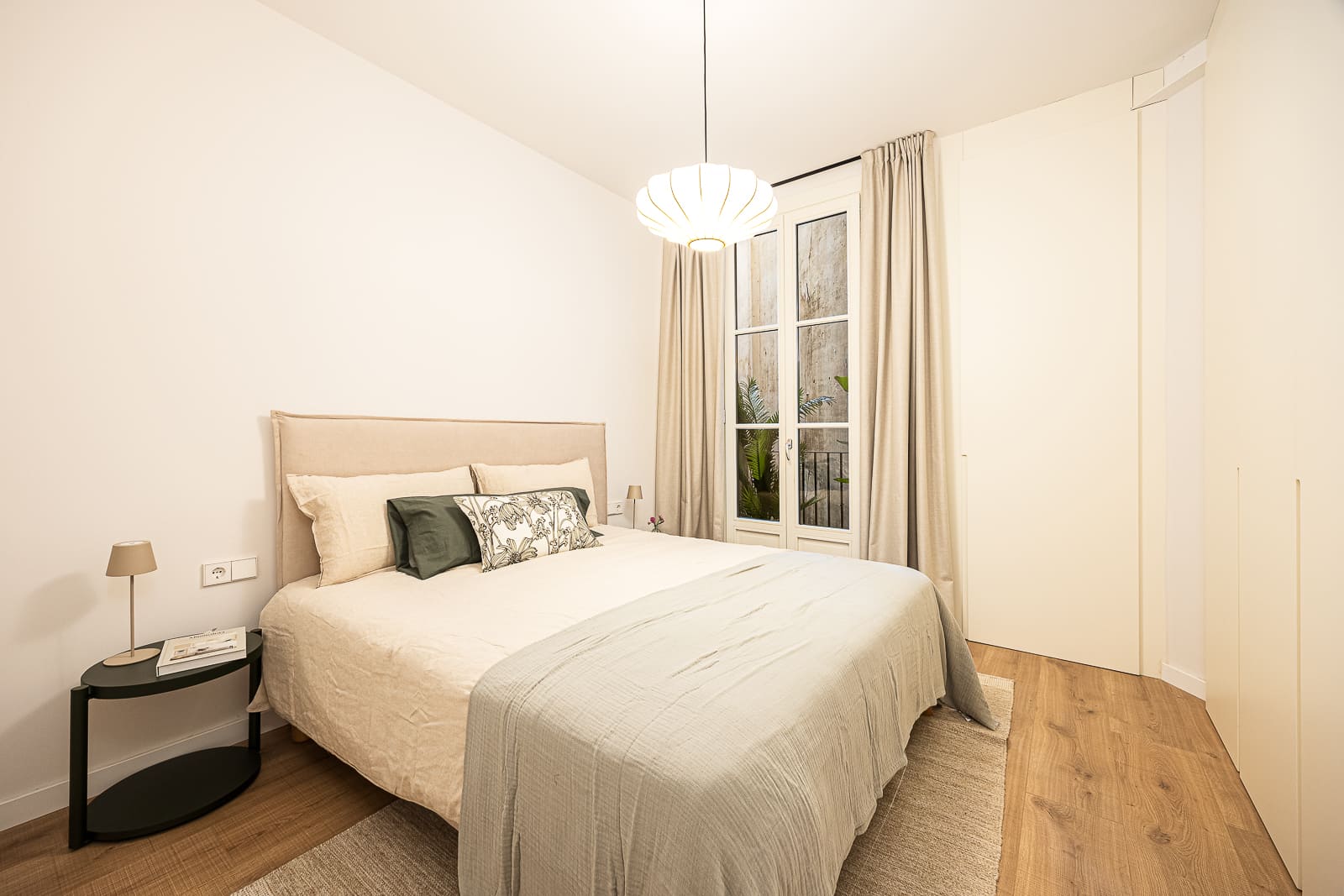 L’appartement est livré meublé. La rénovation conserve les éléments d’origine de l’appartement, tels que les plafonds avec des voûtes catalanes. Son design se distingue par son espace et sa lumière naturelle abondante, créant une ambiance chaleureuse et fonctionnelle. L’appartement est équipé de parquet, de la climatisation et du chauffage. Le bâtiment dispose d’un ascenseur.
