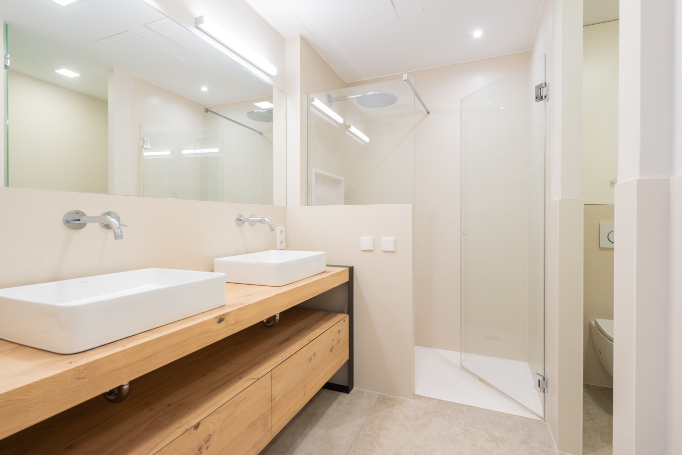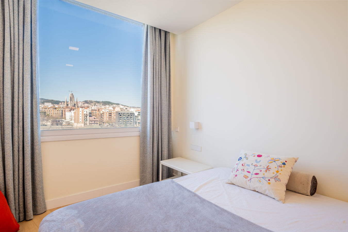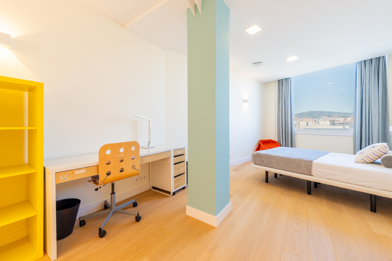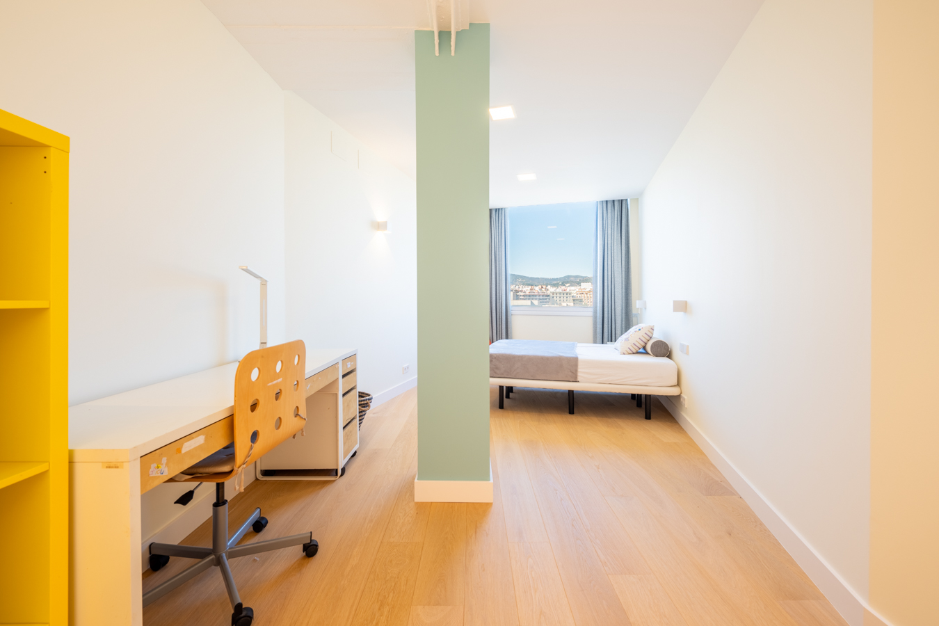 L’étage inférieur est la zone de couchage, avec 4 très grandes chambres. La suite parentale de 27 m2 dispose d’un grand dressing et d’une salle de bains avec cabine de douche. Il y a également 2 chambres doubles de 21 m2 et 19 m2 avec armoires encastrées, qui partageant une salle de bain et, comme la chambre principale, ont une vue fantastique sur la ville. Enfin, une chambre de 13 m2 s’ouvre sur un patio intérieur très lumineux et une salle de bain séparée.