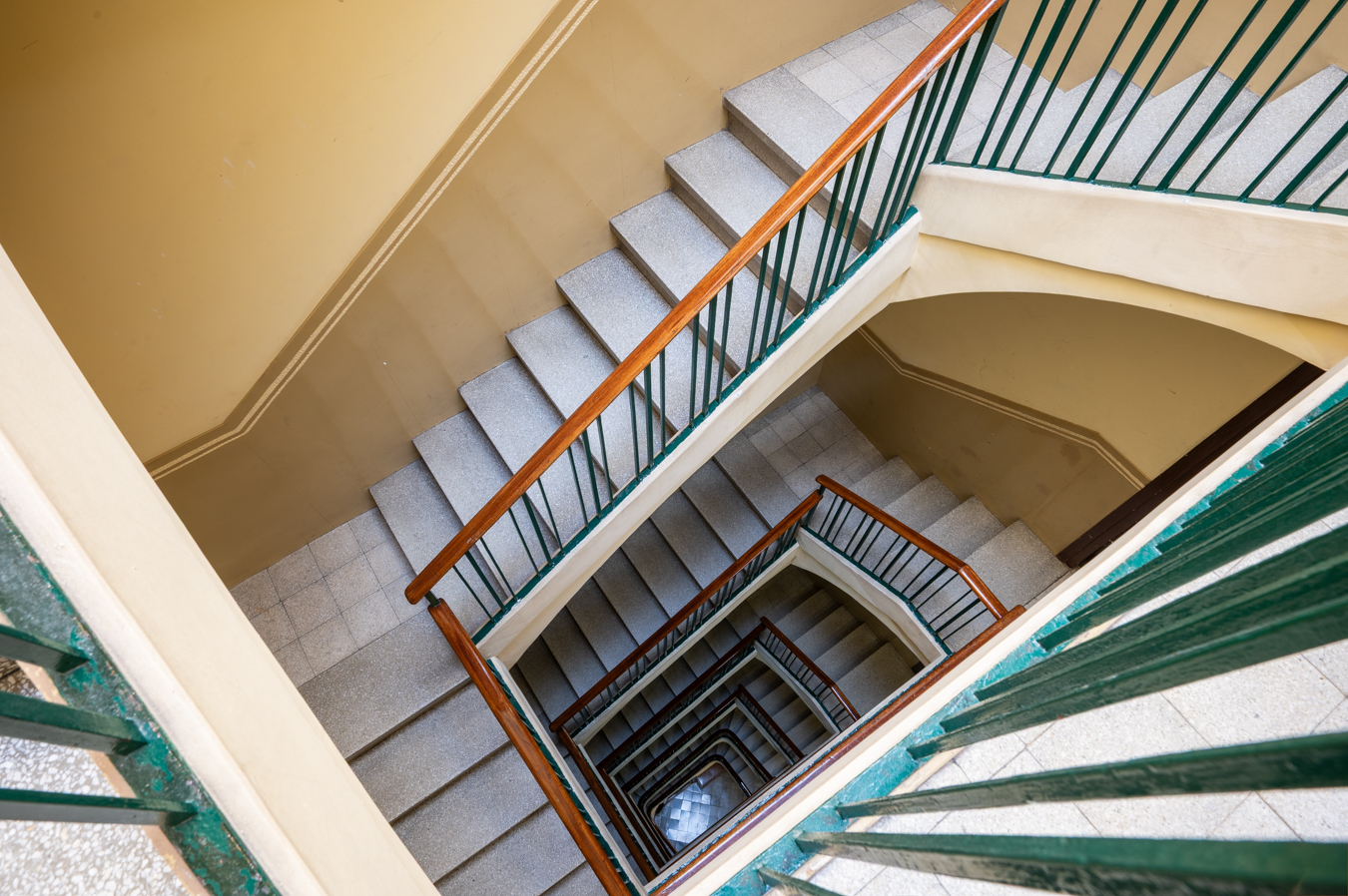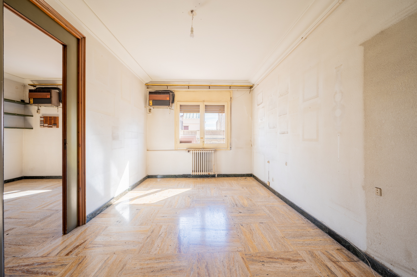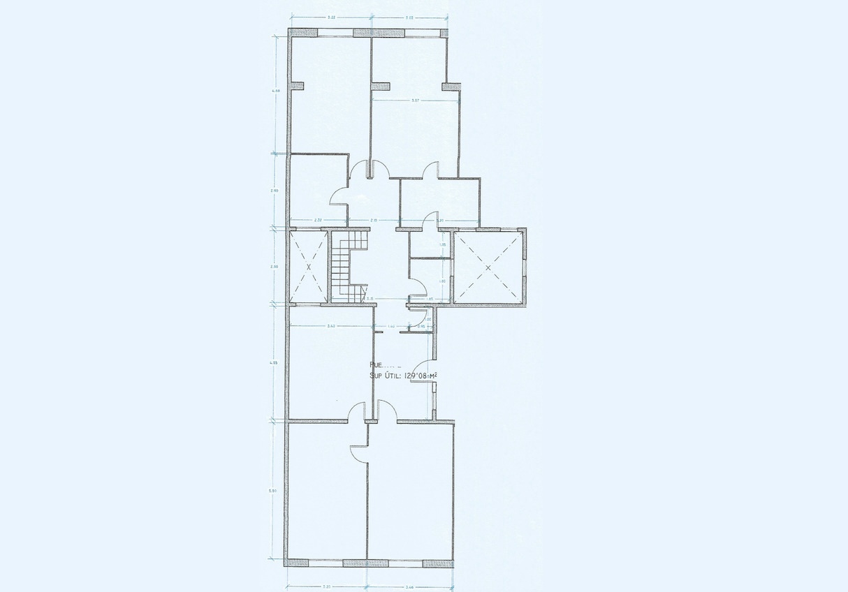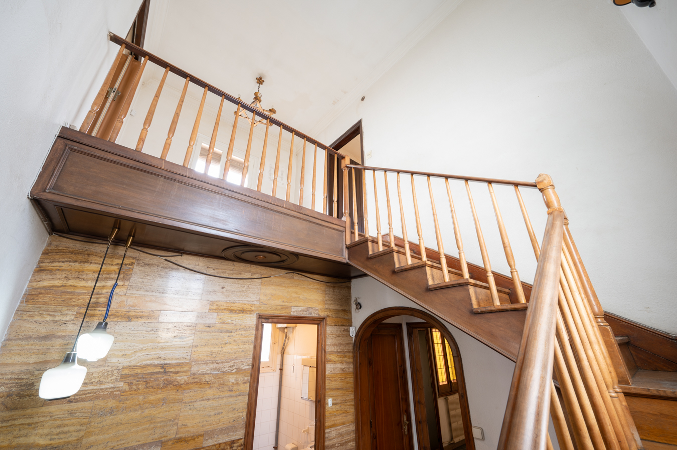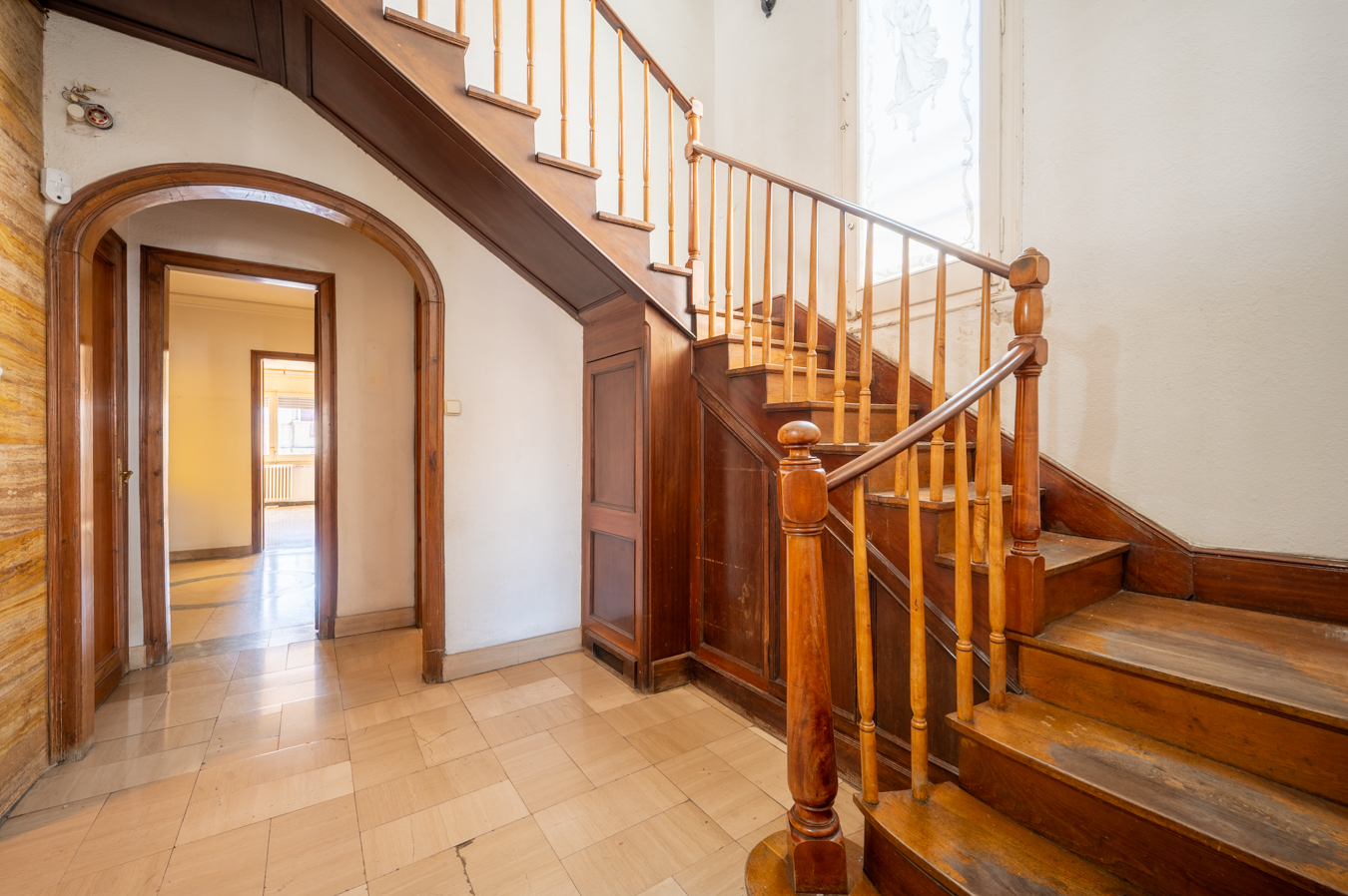 Le penthouse bénéficie d’une double orientation, donnant à la fois sur la rue et sur la cour intérieure. Il se situe aux sixième et septième étages d’un immeuble de caractère avec ascenseur. Le premier étage a 143 m² construits intérieurs et est idéal pour créer l’espace nuit grâce à une rénovation : il pourrait accueillir 3 chambres en suite et une quatrième chambre, toutes doubles, extérieures, spacieuses et très lumineuses. Au centre, un bel escalier relie les deux étages, large et confortable, avec une grande fenêtre apportant beaucoup de lumière.