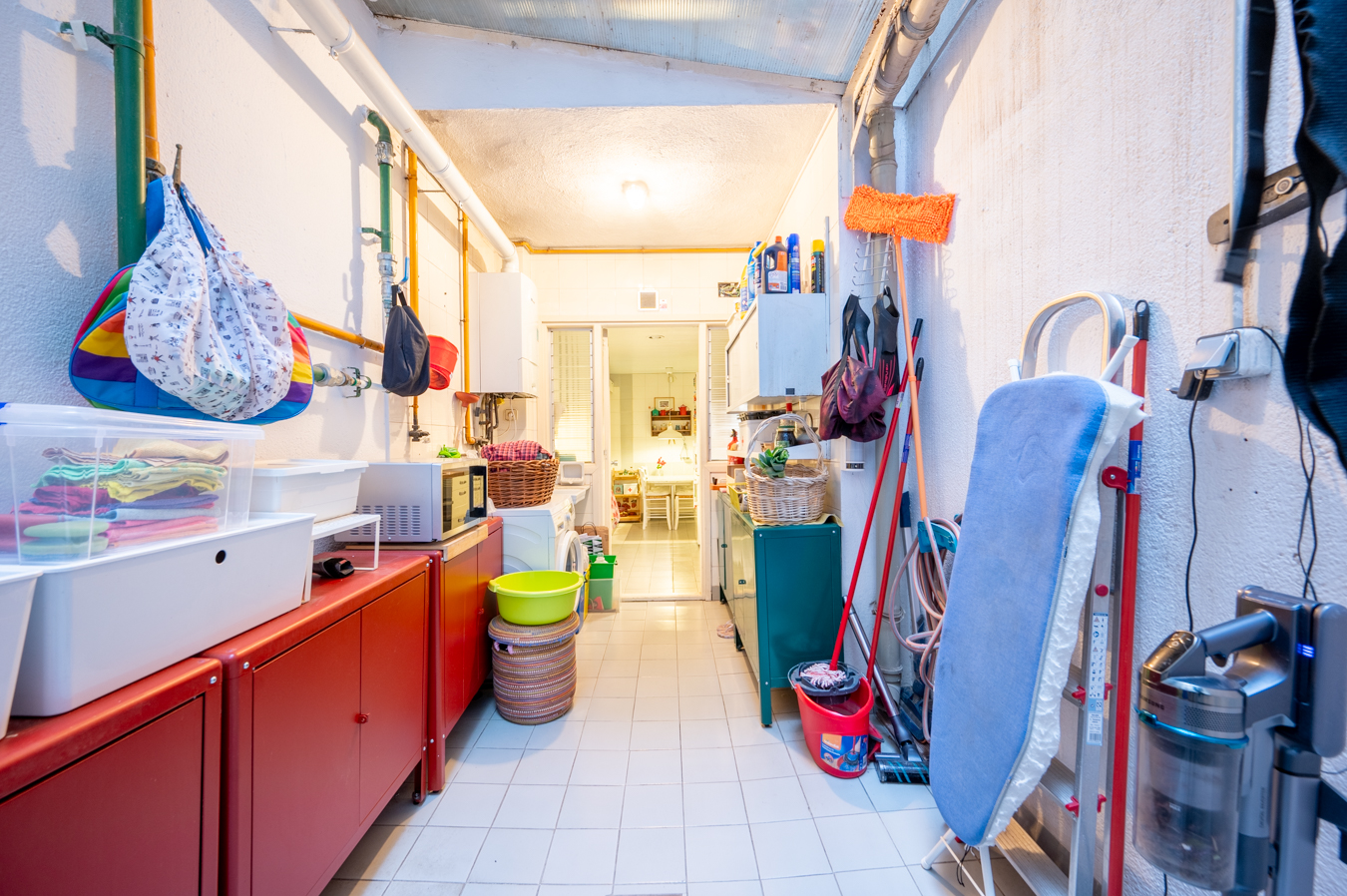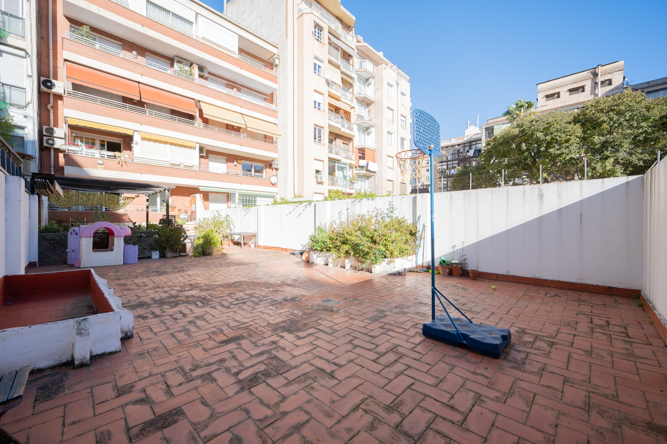 Un hall d’entrée nous accueille et, à travers le couloir, nous avançons vers le salon, très accueillant pour votre quotidien. De là, nous accédons à la spectaculaire terrasse de 150 m², un espace qui vous permettra de créer toutes les ambiances que vous souhaitez pour profiter en plein air de repas, de réunions, de jeux, de votre potager urbain et de détente. De retour à l’intérieur, la cuisine est spacieuse, avec de la place pour une table et des chaises. Elle est équipée d’appareils électroménagers et donne sur une cour qui sert de buanderie.